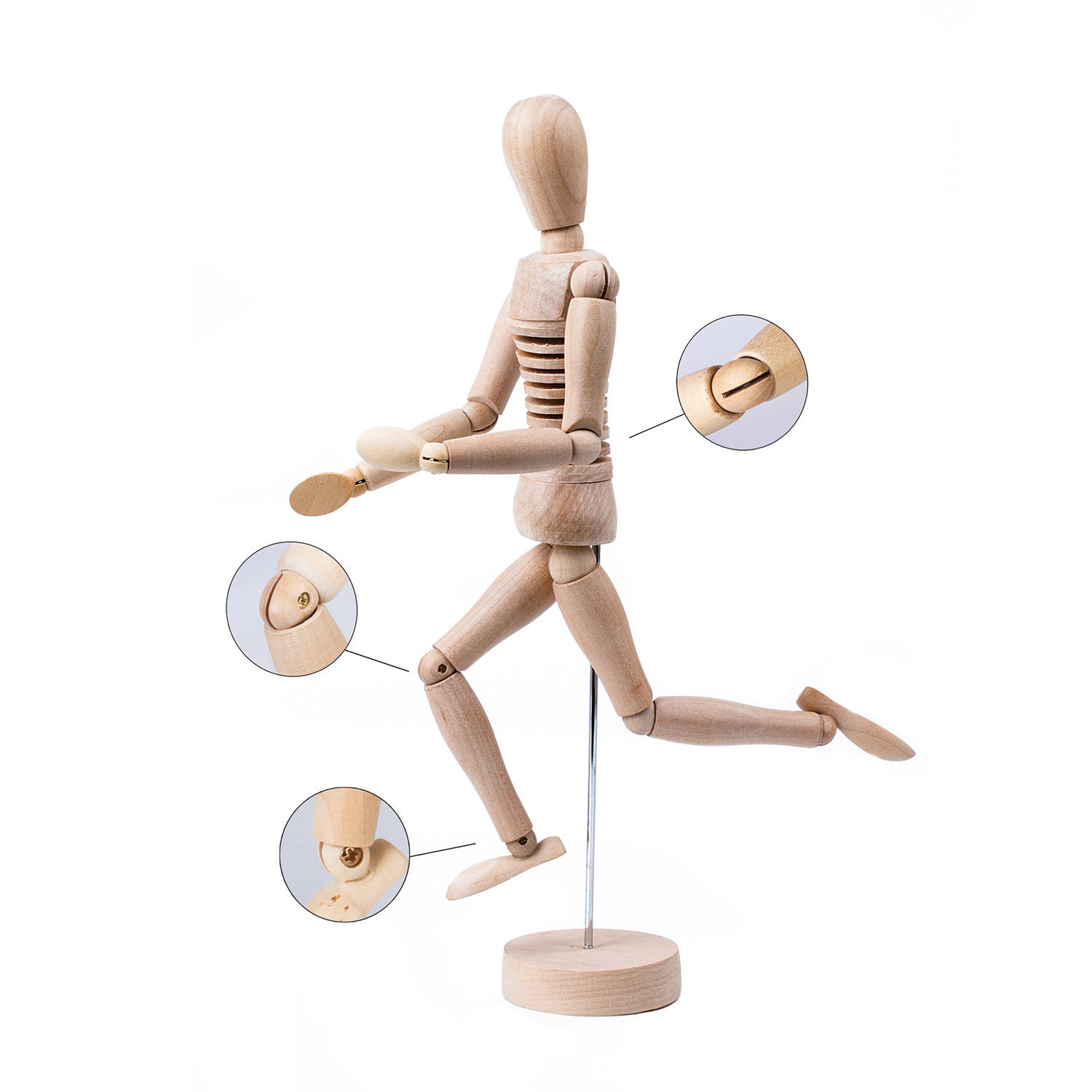 Отдельные части манекена соединяются шарнирами в тех местах, где сгибаются суставы человека. Это предоставляет возможность зафиксировать манекен в необходимом положении и в точности передать то или иное действие, создать основу рисунка, чтобы в дальнейшем проработать картину во всех подробностях.