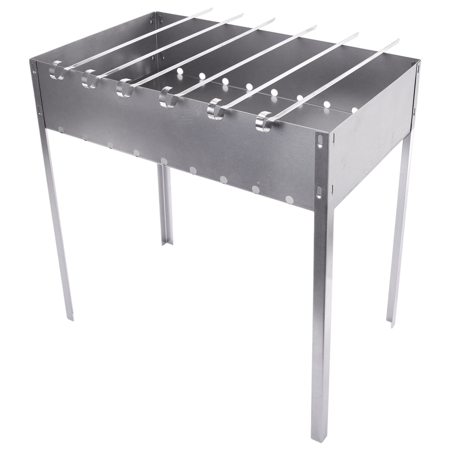 Мангал сборный стальной, размер 500х300х500 мм + 6 шампуров из нержавеющей стали, в коробке, 701728