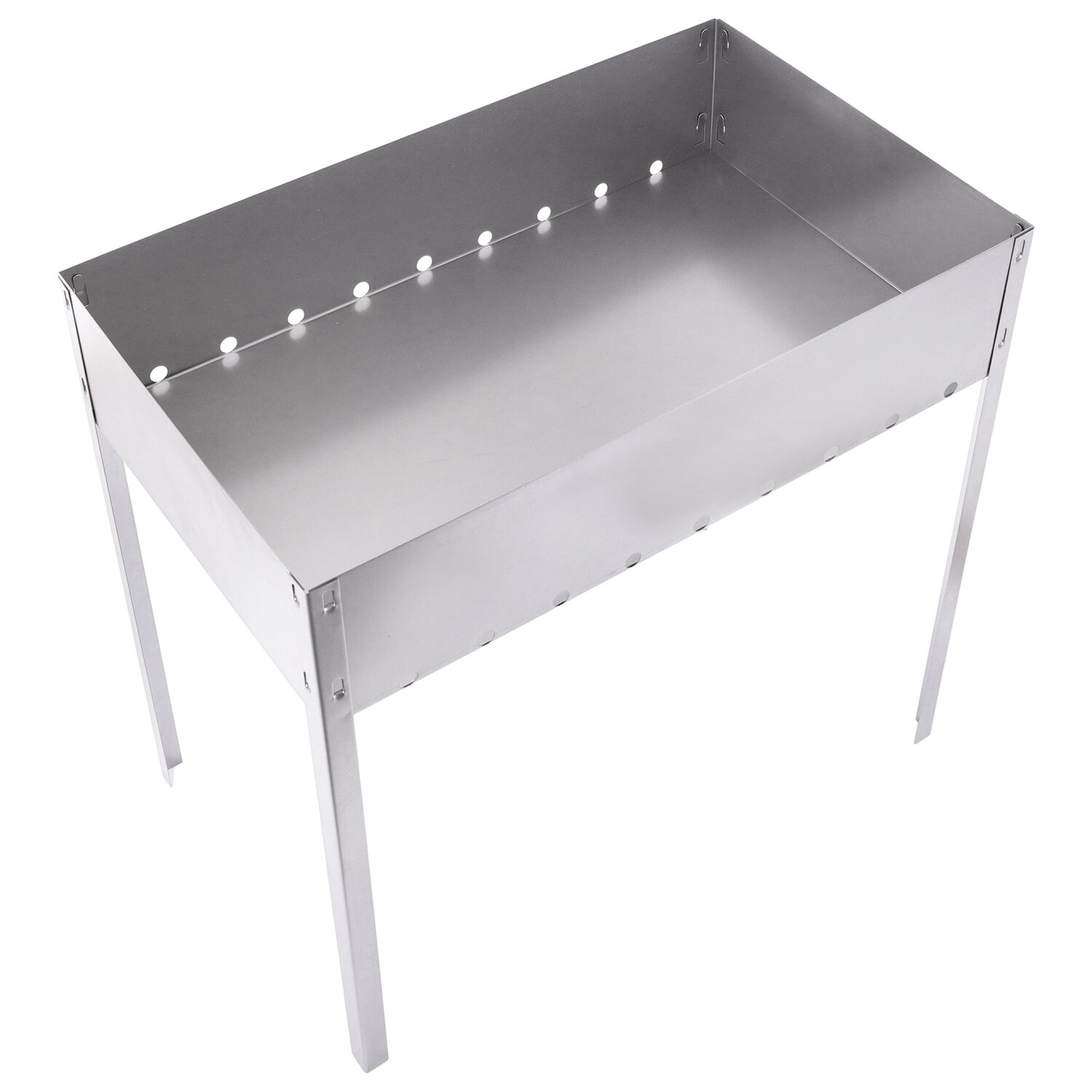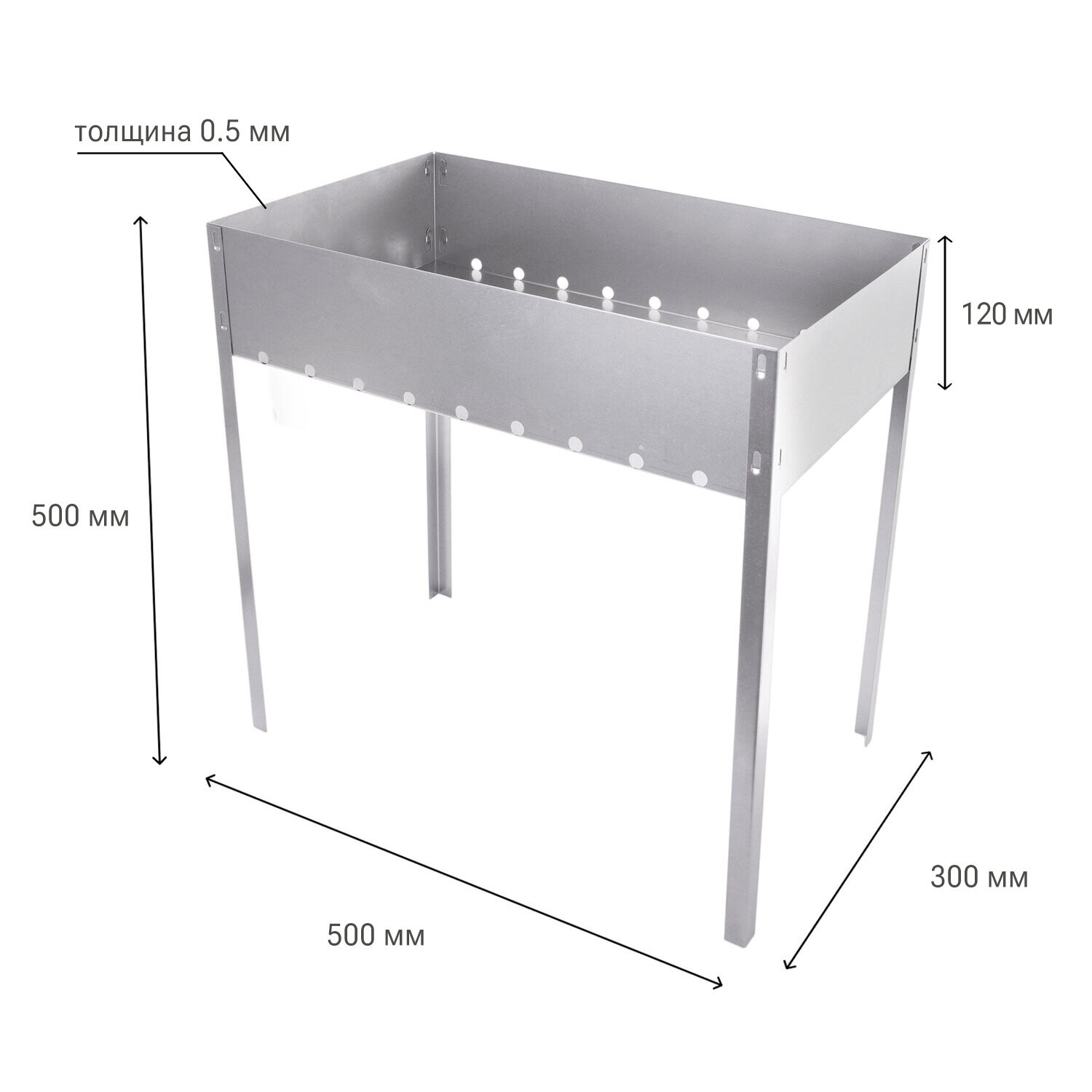 Мангал сборный из стали. Практичен в использовании: удобные длинные ножки создают комфортные условия для приготовления блюд. Компактные габариты 500х300х500 мм позволяют легко переносить мангал и быстро подготавливать его к использованию.