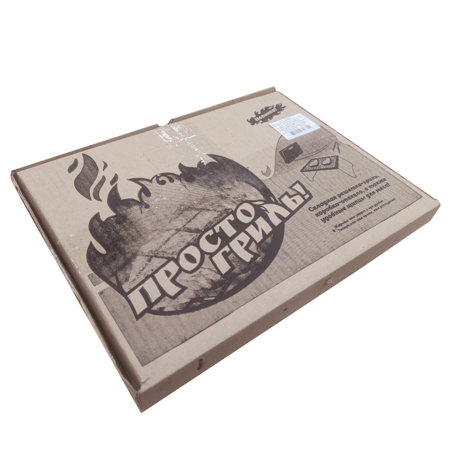 В комплект также входят щипцы, а многоразовую картонную коробку можно использовать в качестве опахала. Конструкция позволяет использовать решётку вместе с кастрюлей или сковородой.