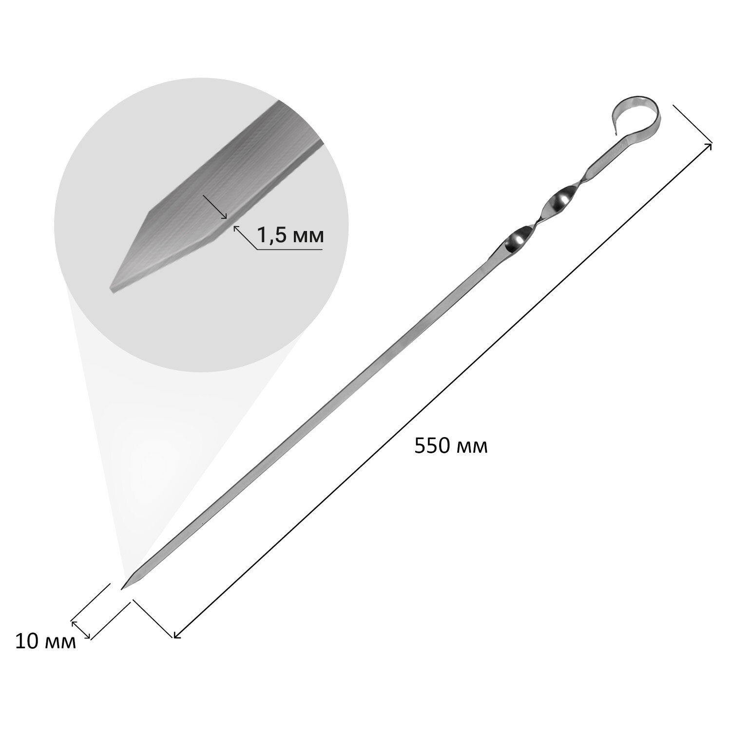 - Шампур плоский, размер 550х10х1,5 мм, нержавеющая сталь, 701736