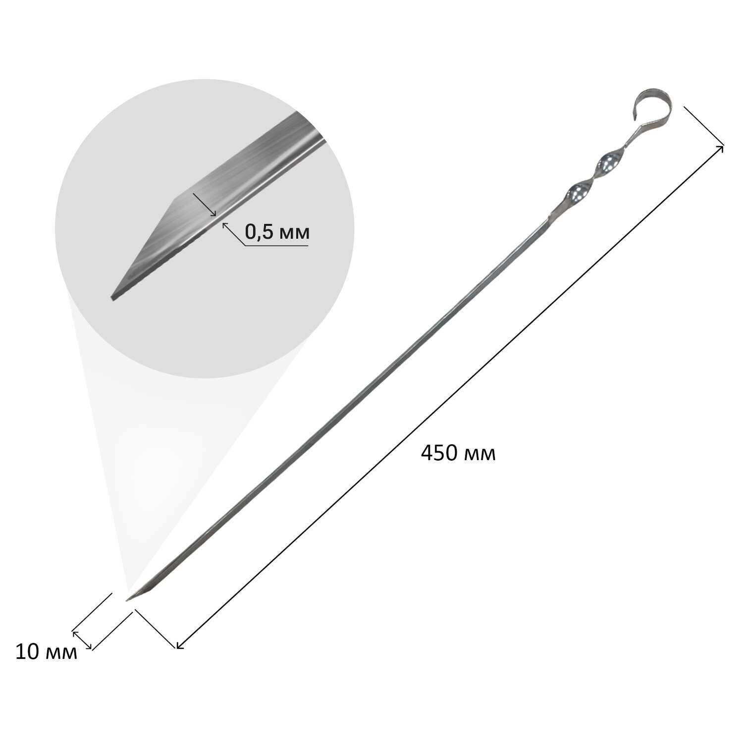 Шампур угловой, размер 450х10х0,5 мм, 701731