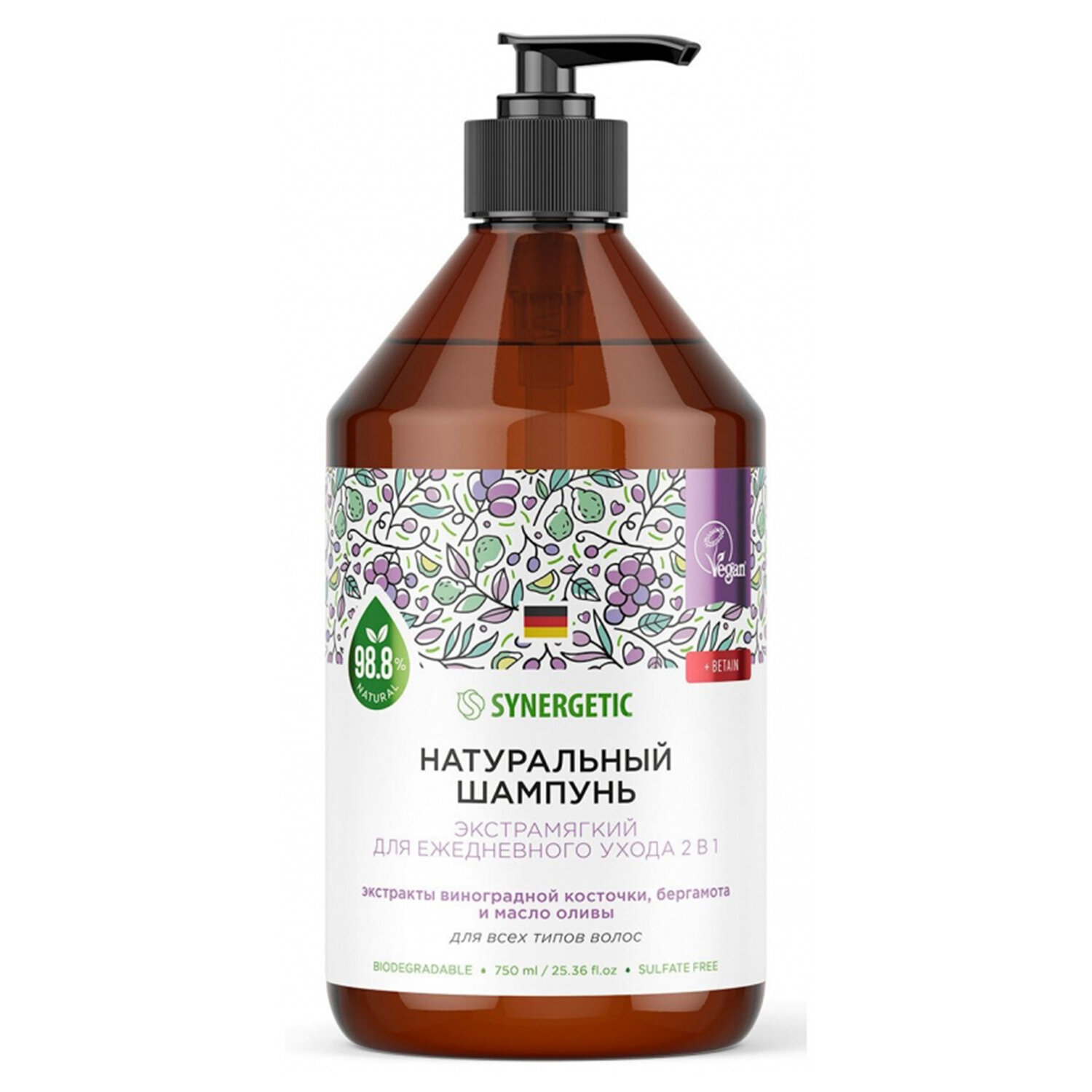 Шампунь 750 мл, SYNERGETIC "Для ежедневного ухода 2 в 1", бессульфатный, 701753