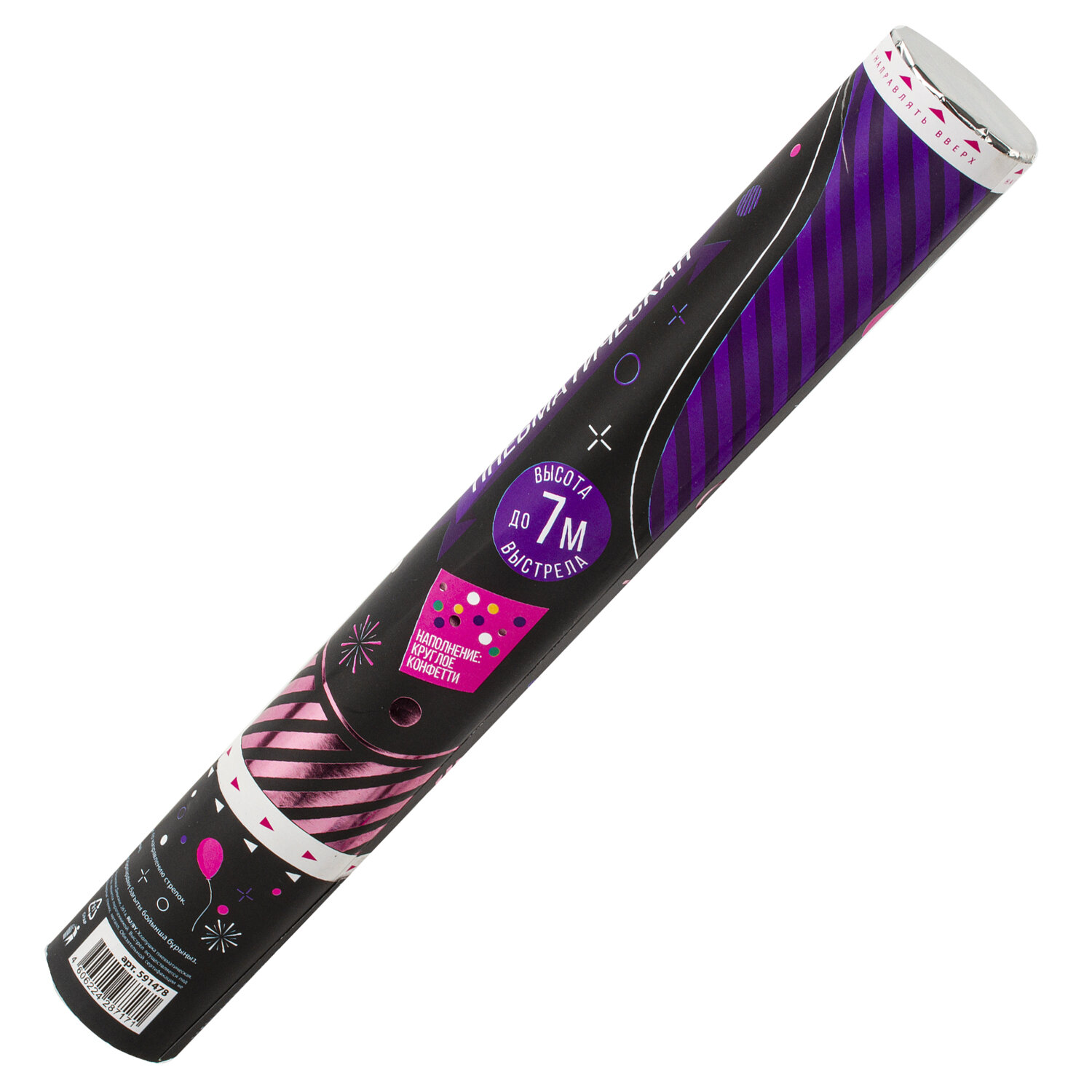 Хлопушка высотой 30 см с фольгированным круглым наполнителем цвета ассорти является абсолютно безопасной. Выстрел осуществляется под действием сжатого воздуха. Не является пиротехникой. Средняя дальность выстрела – 5-7 м. Корпус хлопушки состоит из двух частей: пневматического баллона со сжатым воздухом и картонного цилиндра с наполнителем. Рекомендуется использовать хлопушку внутри больших помещений или на улице. Хлопушка пневматическая ЗОЛОТАЯ СКАЗКА 30 см, фольга, круги, ассорти, 591478