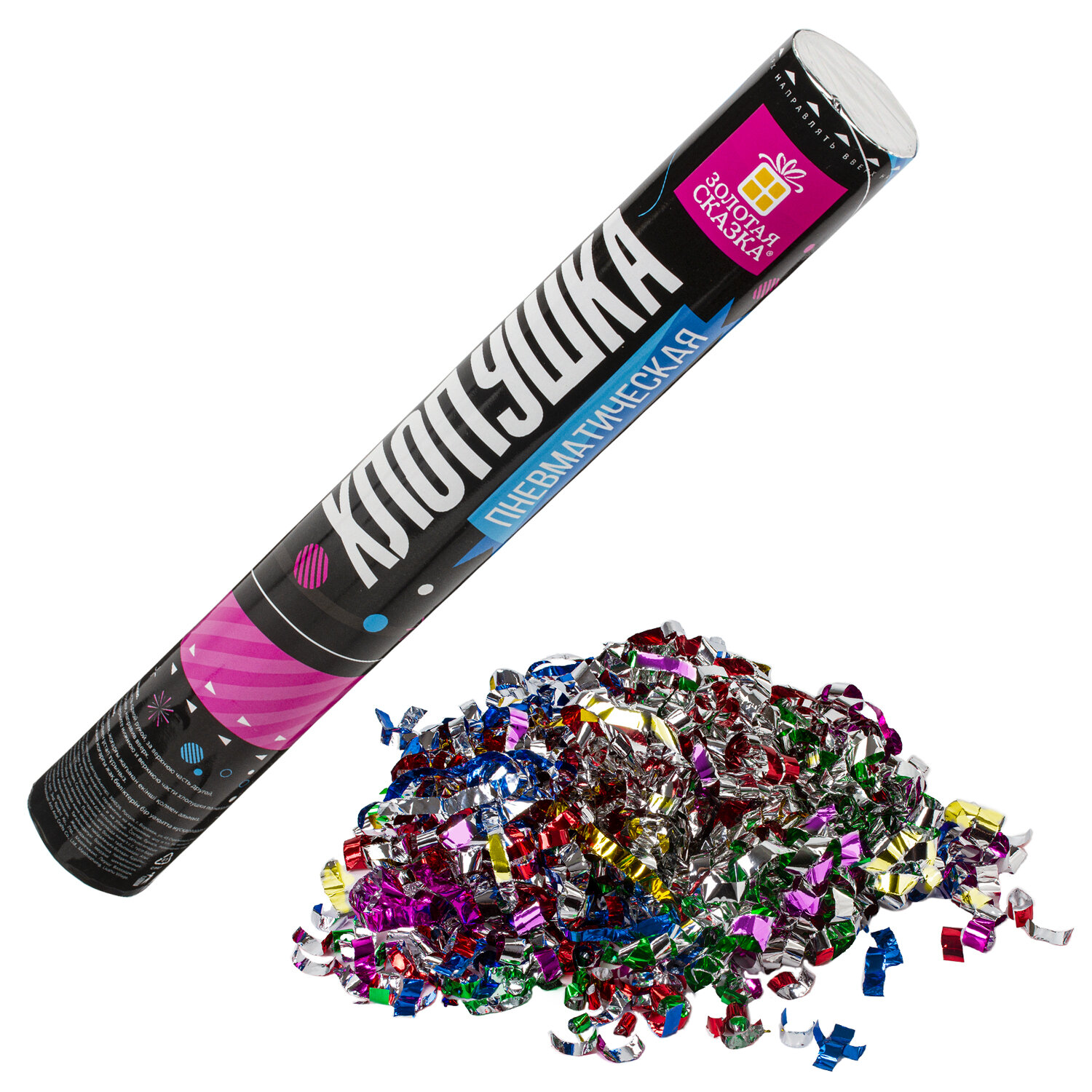 - Хлопушка пневматическая ЗОЛОТАЯ СКАЗКА 30 см, фольга, серпантин, ассорти, 591474