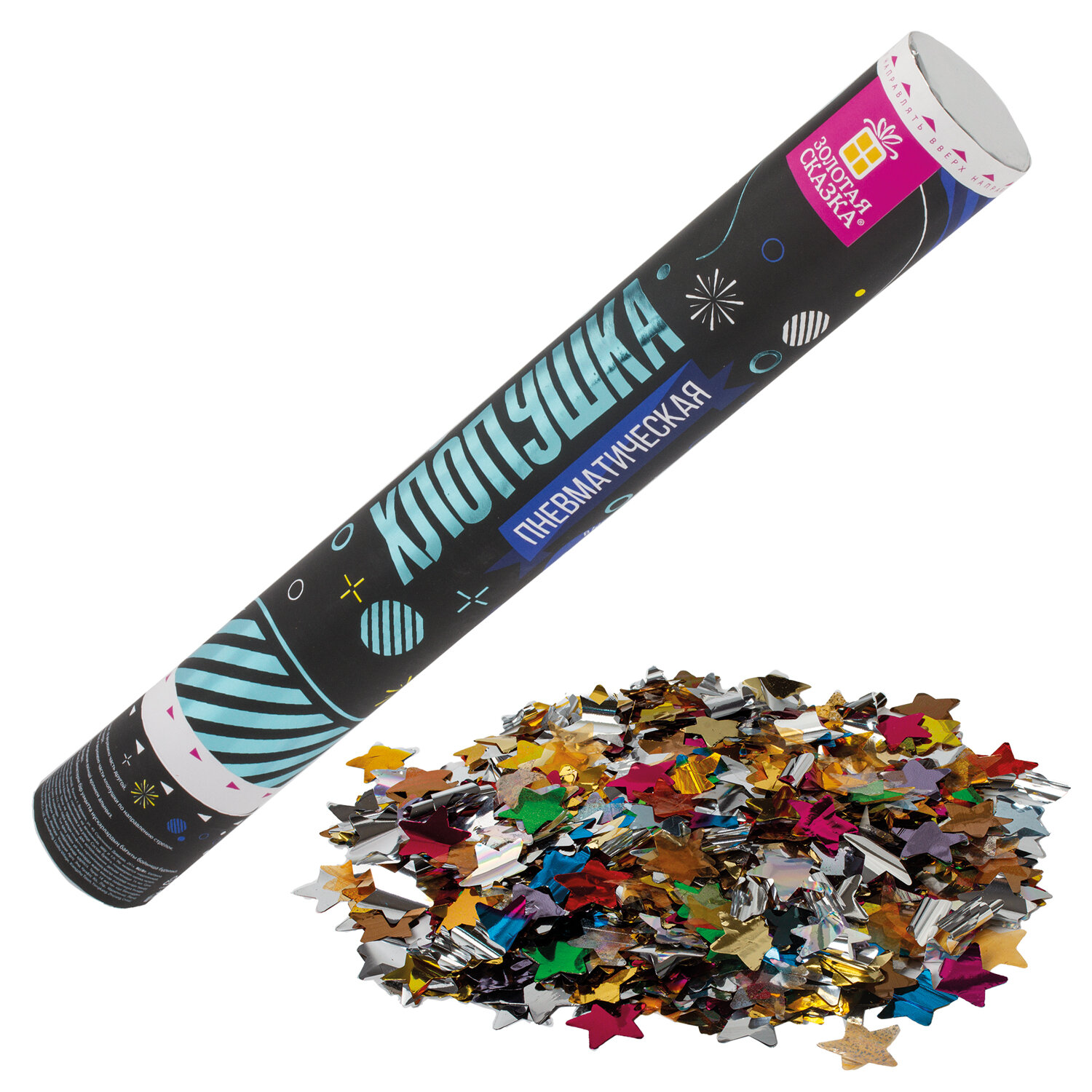 - Хлопушка пневматическая ЗОЛОТАЯ СКАЗКА 40 см, фольга, звезды, ассорти, 591480