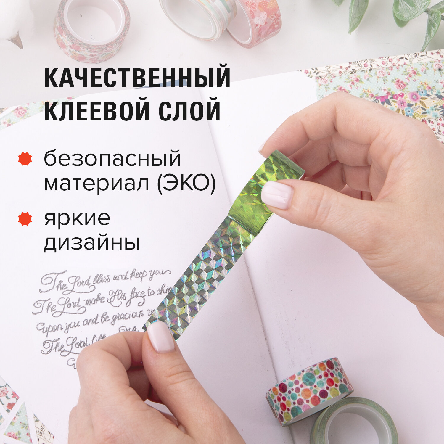 - Клейкие ленты 15 мм х 5 м, декоративные голографические, ОСТРОВ СОКРОВИЩ, комплект 6 шт., ассорти №2, 227276