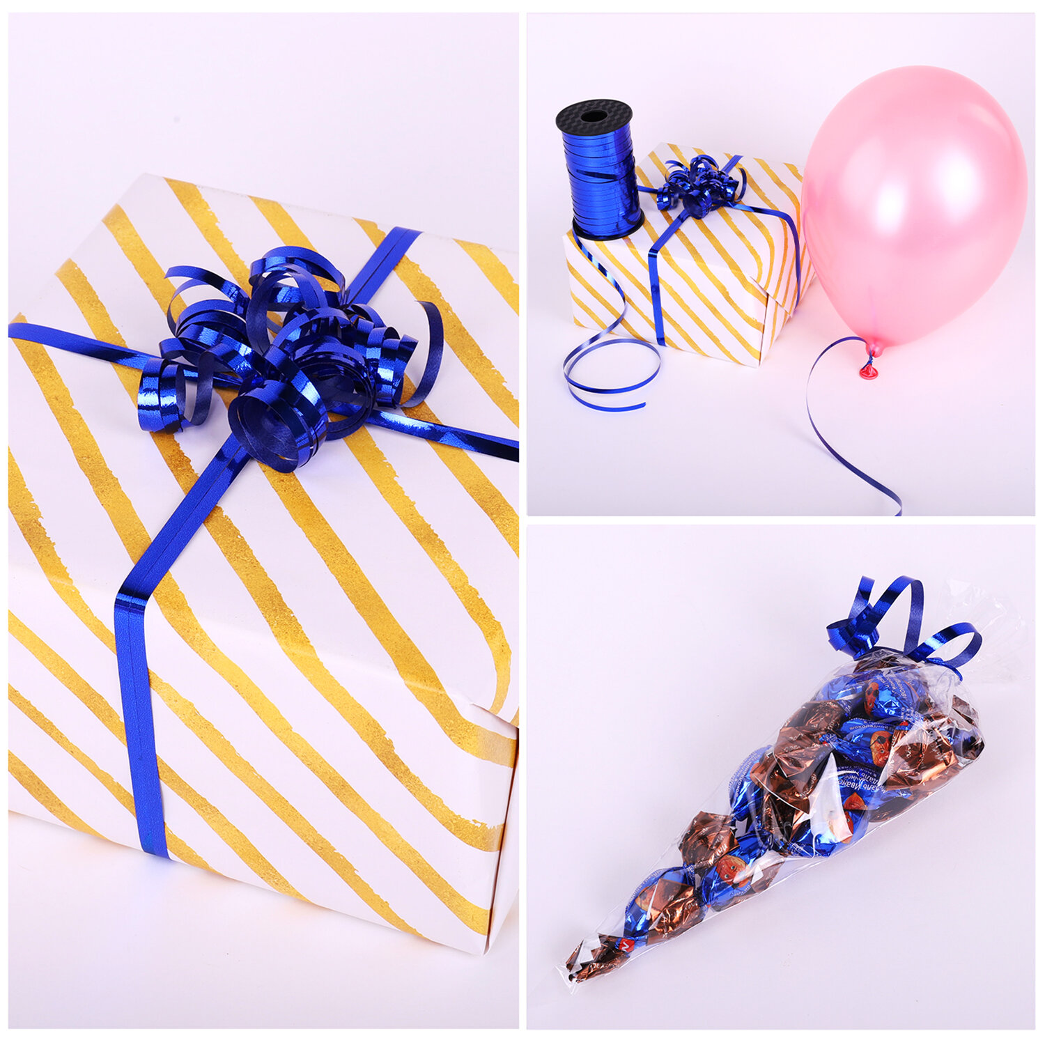 - Лента упаковочная декоративная для шаров и подарков, металлик, 5 мм х 250 м, синяя, ЗОЛОТАЯ СКАЗКА, 591818