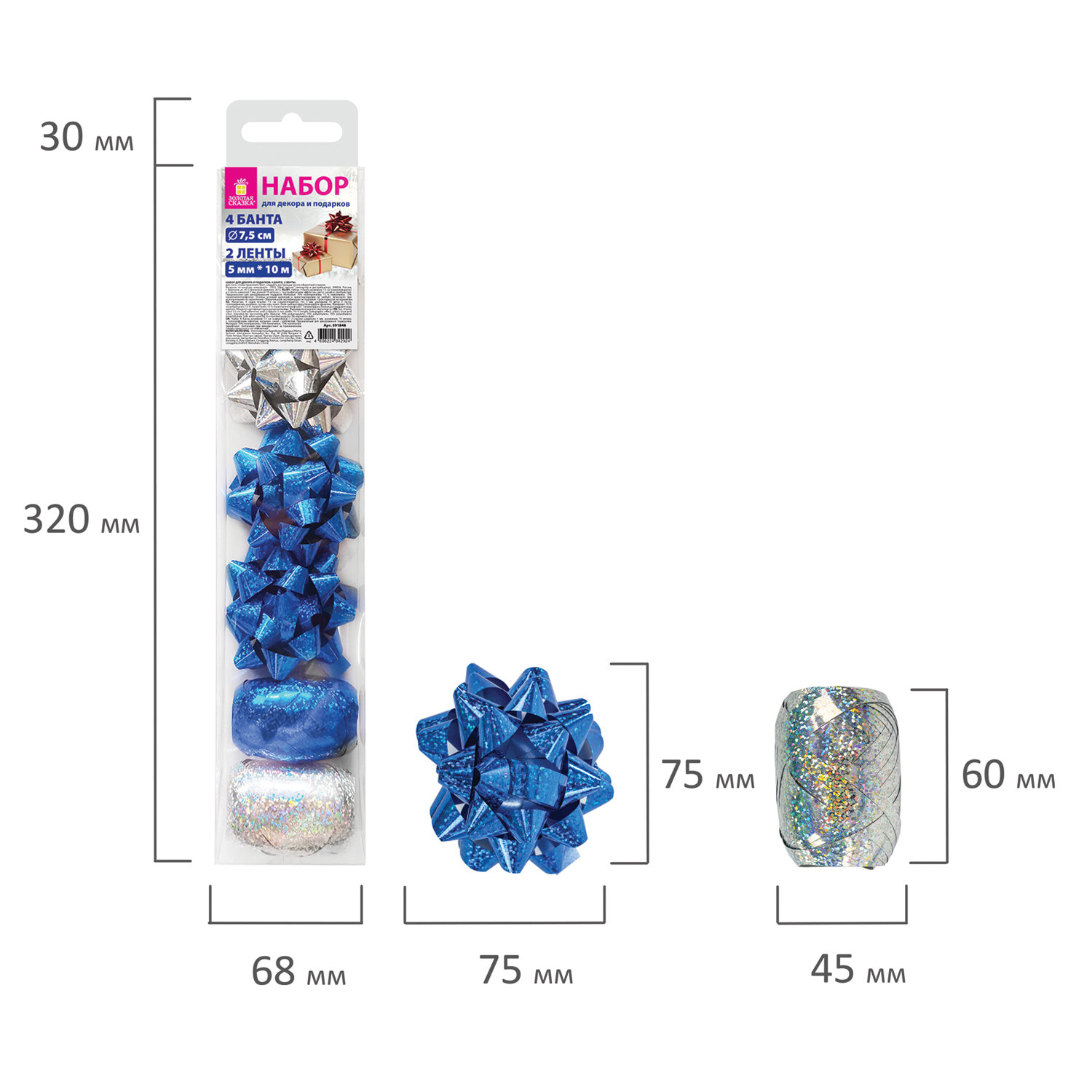 - Набор для декора и подарков 4 банта, 2 ленты, голография, цвета синий, серебристый, ЗОЛОТАЯ СКАЗКА, 591848