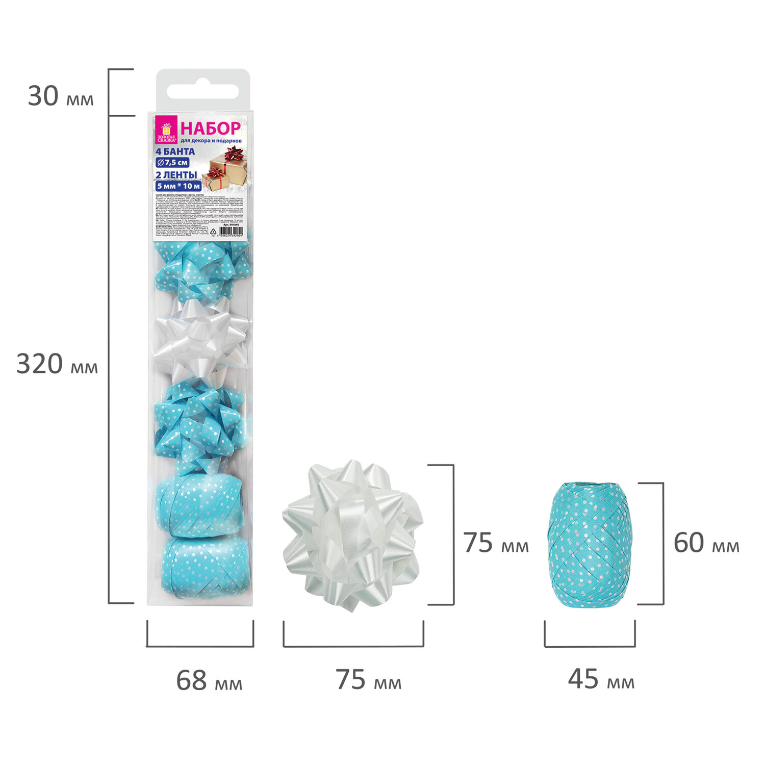 - Набор для декора и подарков 4 банта, 2 ленты, горошек, цвета: белый, голубой, ЗОЛОТАЯ СКАЗКА, 591845