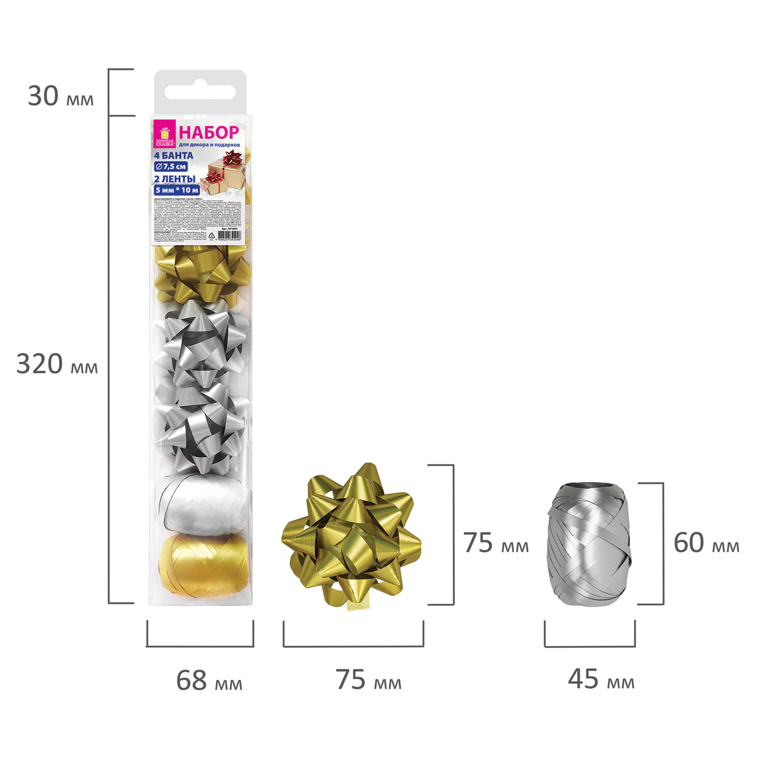 - Набор для декора и подарков 4 банта, 2 ленты, матовый металл, цвета: золотистый, серебристый, ЗОЛОТАЯ СКАЗКА, 591850