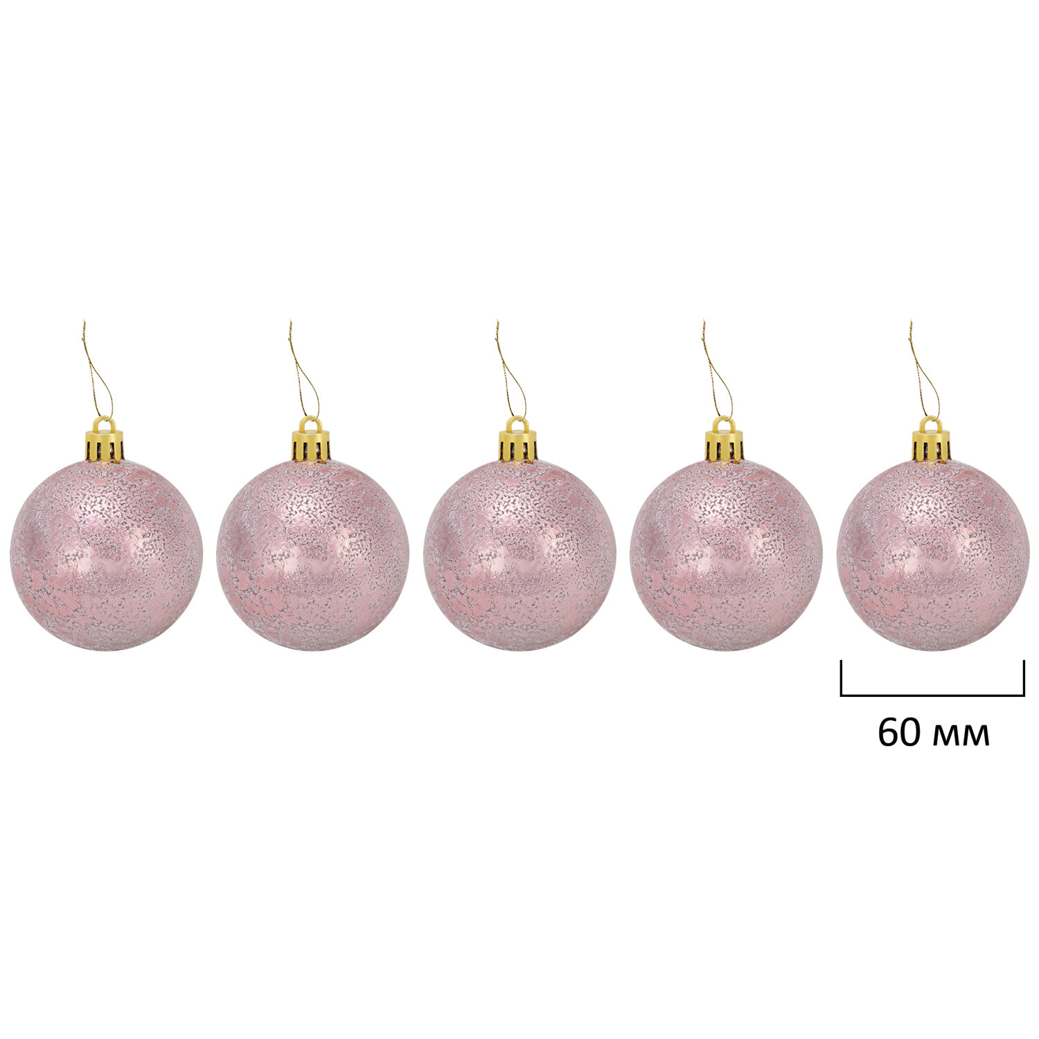 5 шт. глянцевых шаров розово-золотистого цвета (6 см);