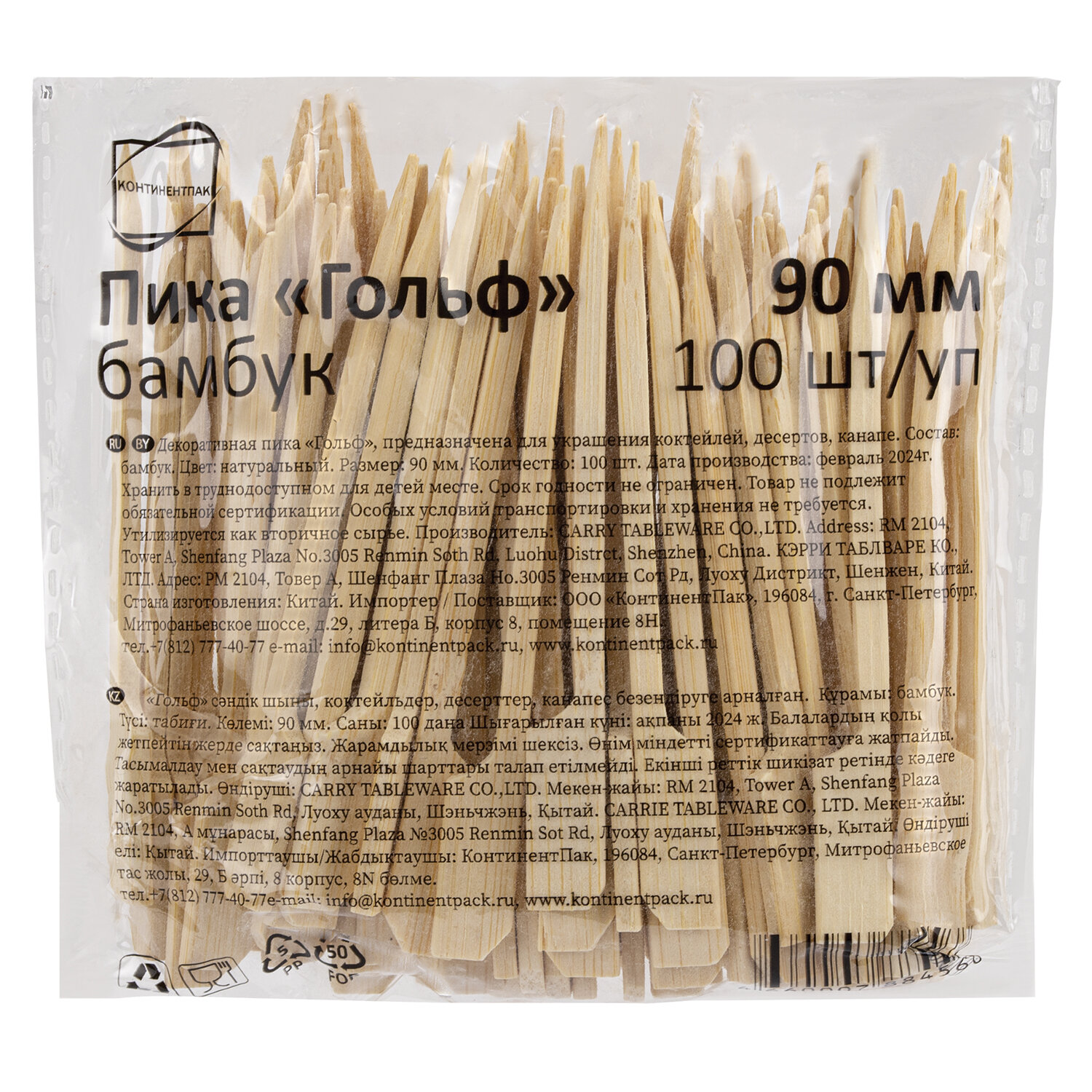 Элегантная форма и стильный дизайн пик придадут вашим блюдам особый шарм и привлекательность. Пики для канапе бамбуковые ГОЛЬФ 9 см, 100 шт., КП, 133043