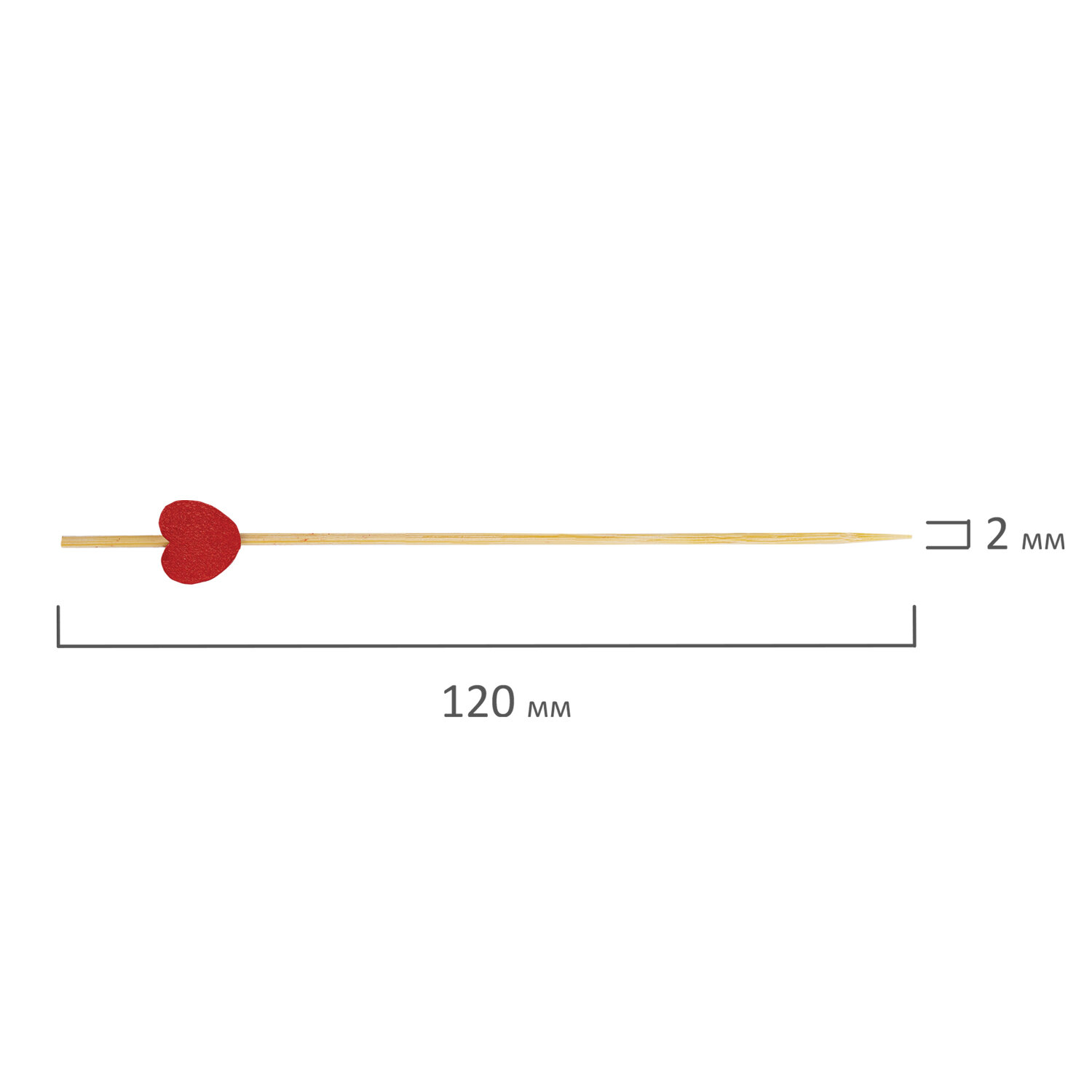 Пики для канапе бамбуковые "Сердце красное", 12 см, 100 шт., КП, 139419