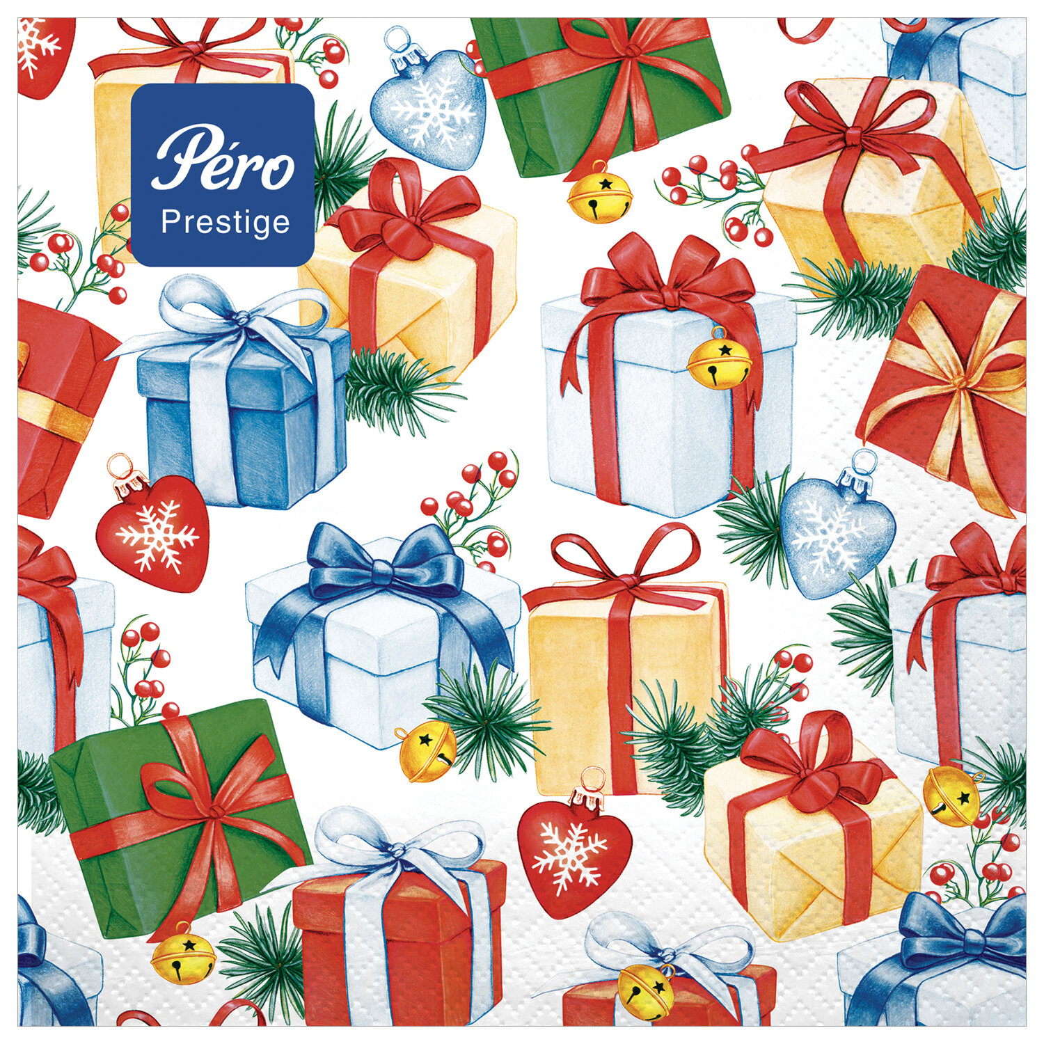 - Салфетки бумажные 20 шт., 33х33 см, "Подарки", 3-слойные, PERO "Prestige", 2951