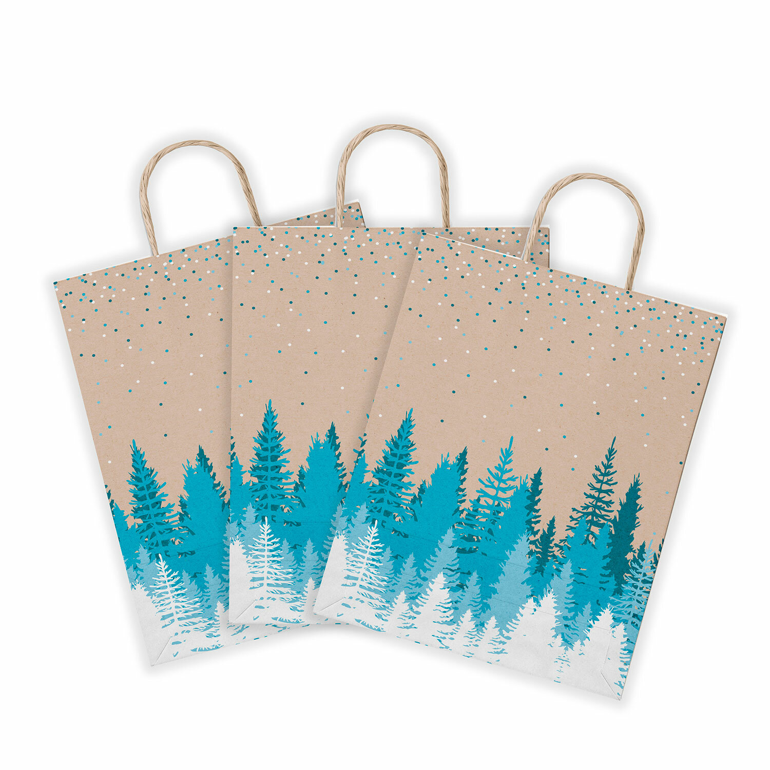 Рекомендуем украсить пакет наклейками или биркой и использовать вместе с декоративными лентами, шнурами, шпагатом. Крафт-пакет бумажный "Лес" 26х15х35 см, с кручеными ручками, плотность 80 г/м2, 112498