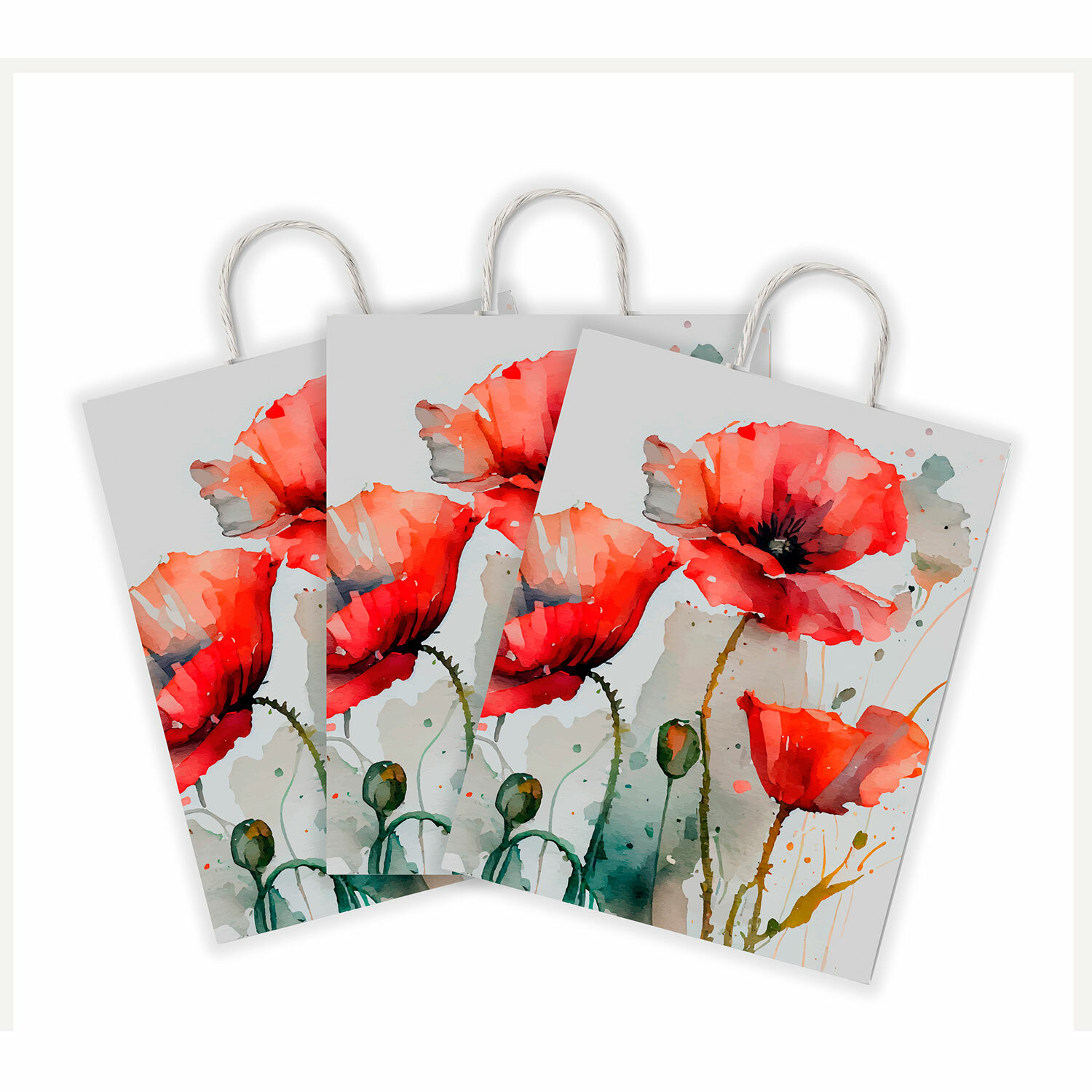 - Крафт-пакет бумажный "Маки" 22х12х25 см, с кручеными ручками, плотность 100 г/м2, белый, 114171