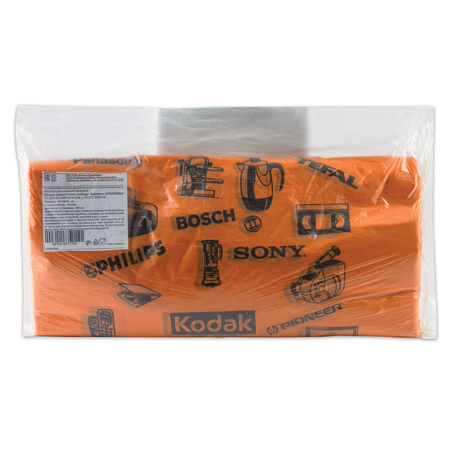 - Пакеты "майка", КОМПЛЕКТ 100 шт., 42+18х65 см, ПНД, "Электрон", 18 мкм, ОРАНЖЕВЫЕ, ЮПЛАСТ, ЮМАЙ1010