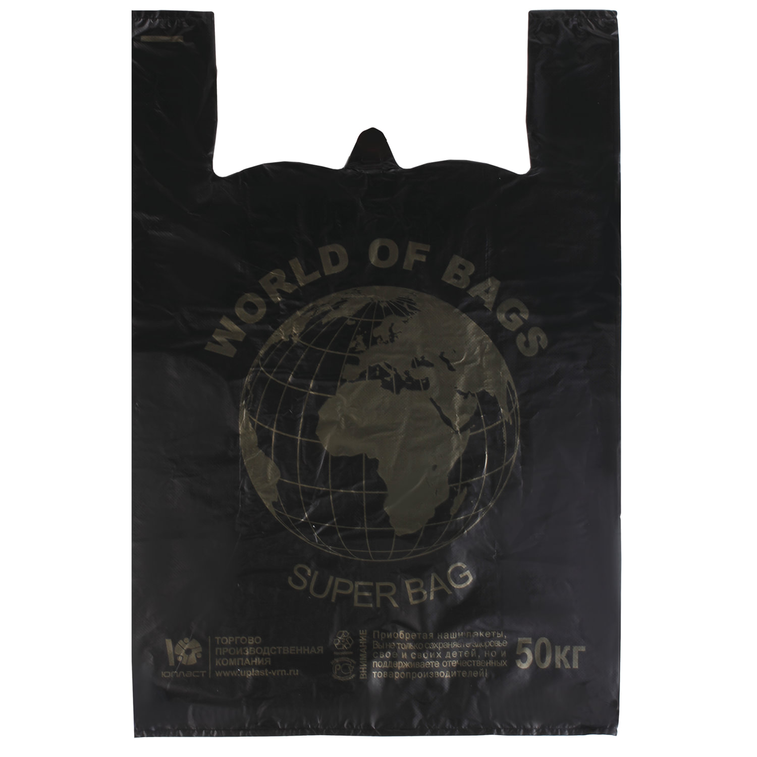 - Пакеты "майка", КОМПЛЕКТ 100 шт., 43+20х65 см, ПНД, "World", 30 мкм, ЧЕРНЫЕ, ЮПЛАСТ, ЮМАЙ1071