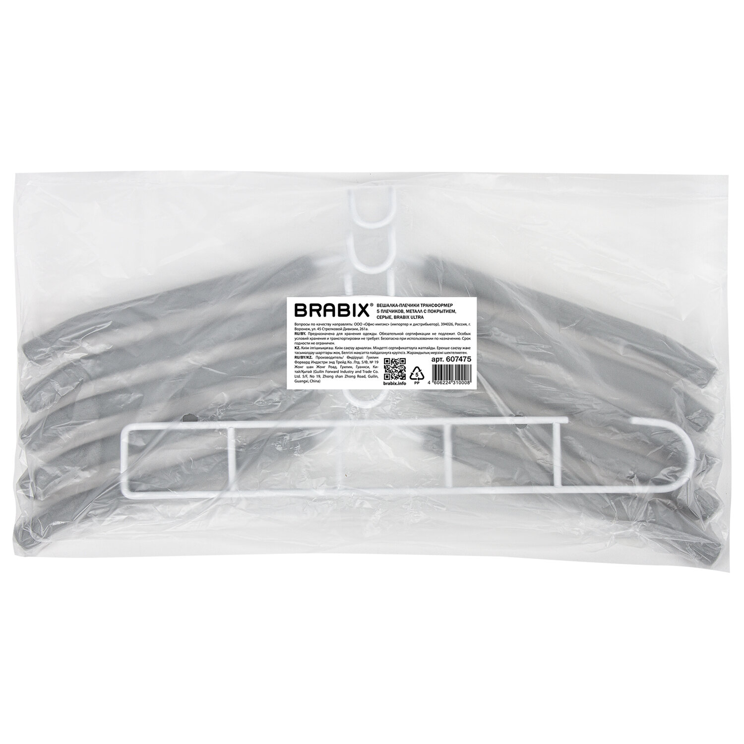 - Вешалка-плечики трансформер, 5 плечиков, металл с покрытием, белые, BRABIX ULTRA, 607475