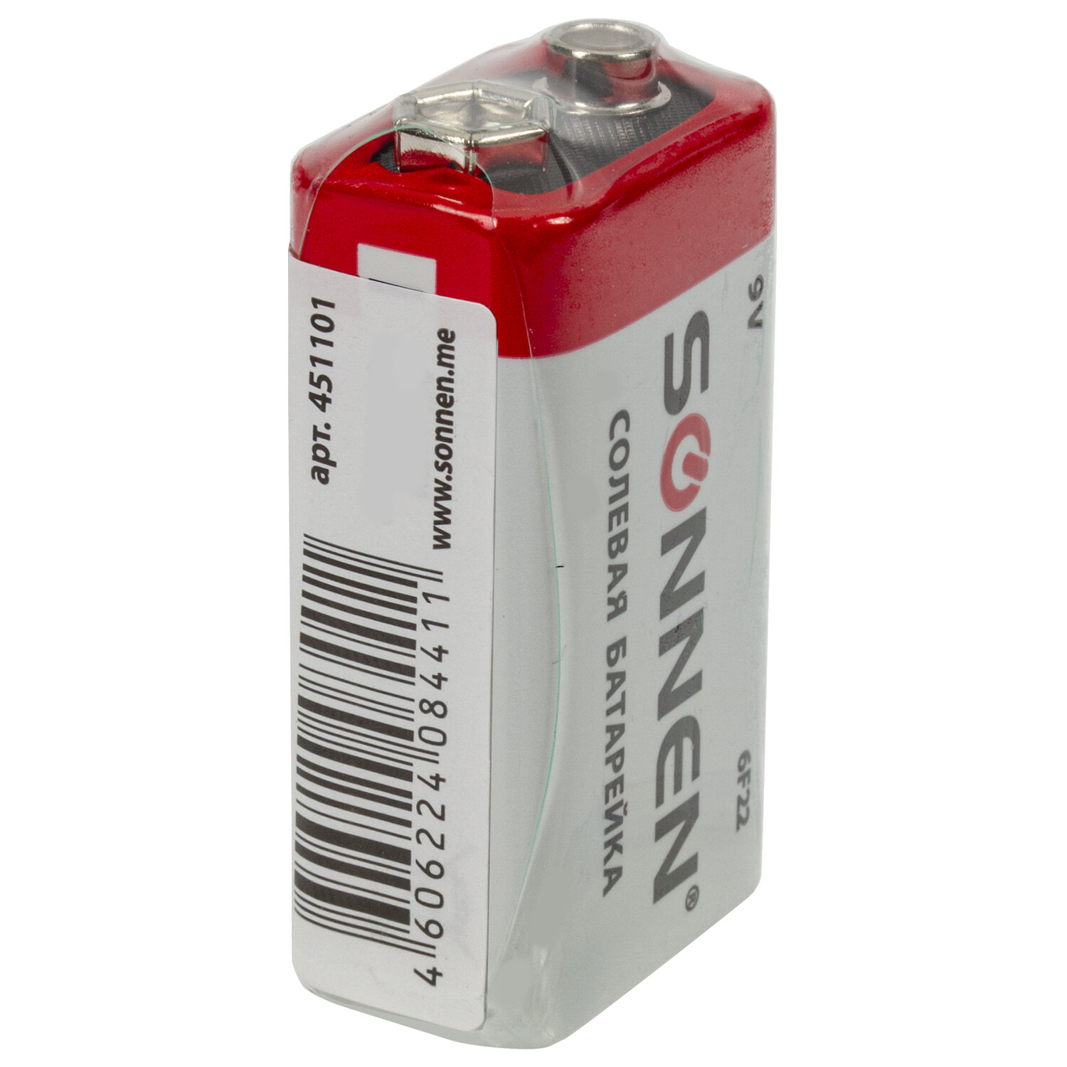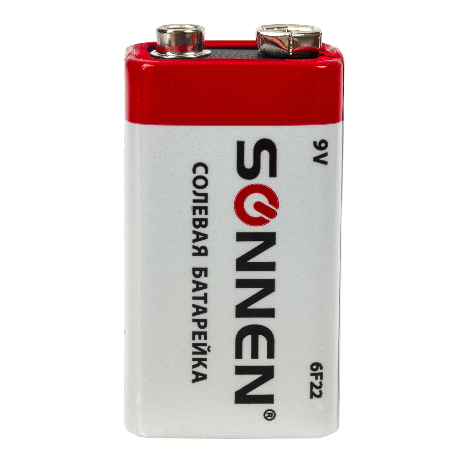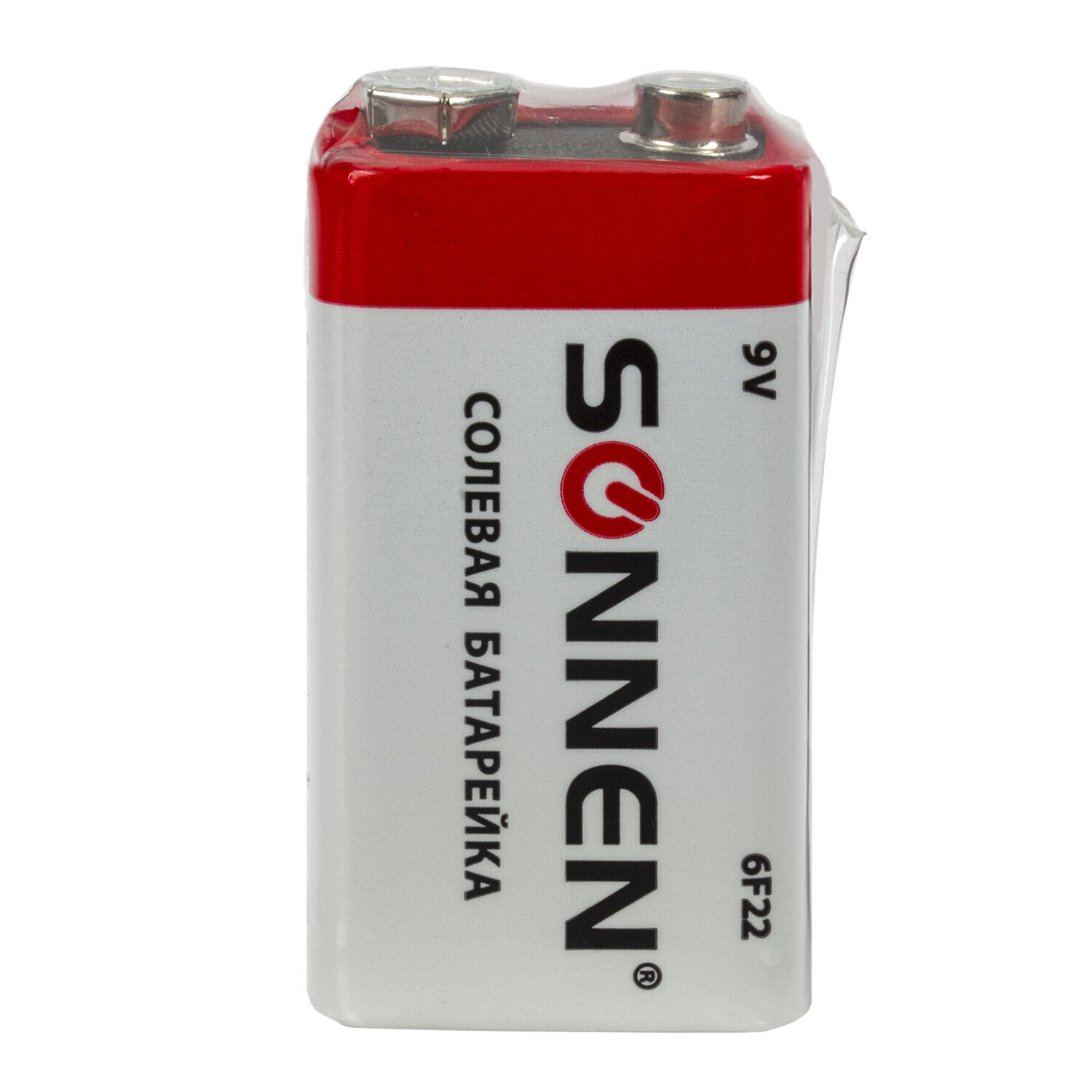 - Батарейка SONNEN, Крона (6R61, 6F22, 1604), солевая, 1 шт., в пленке, 451101