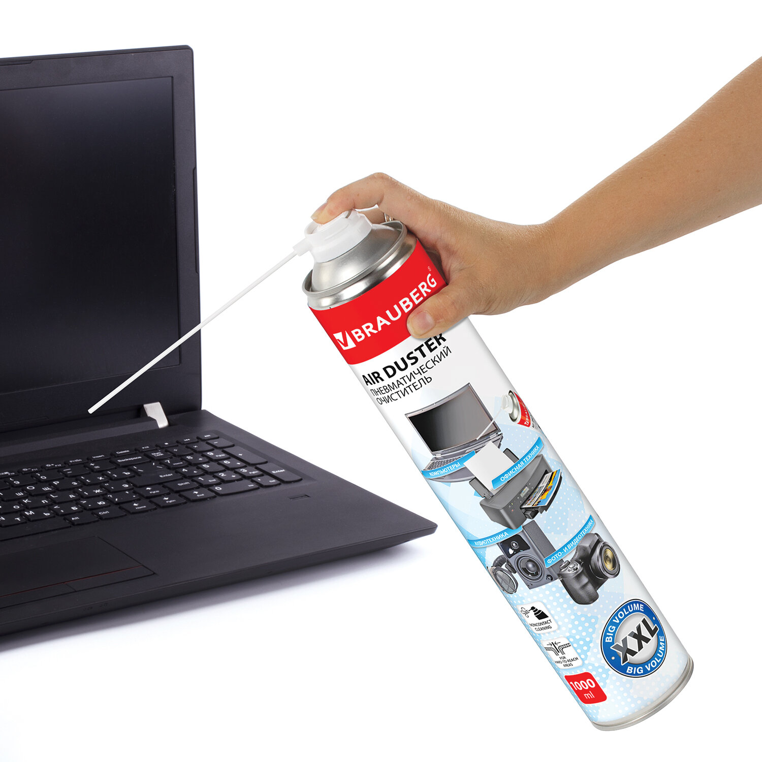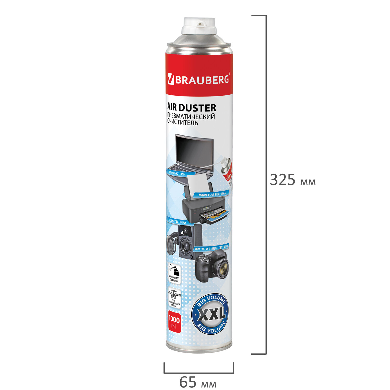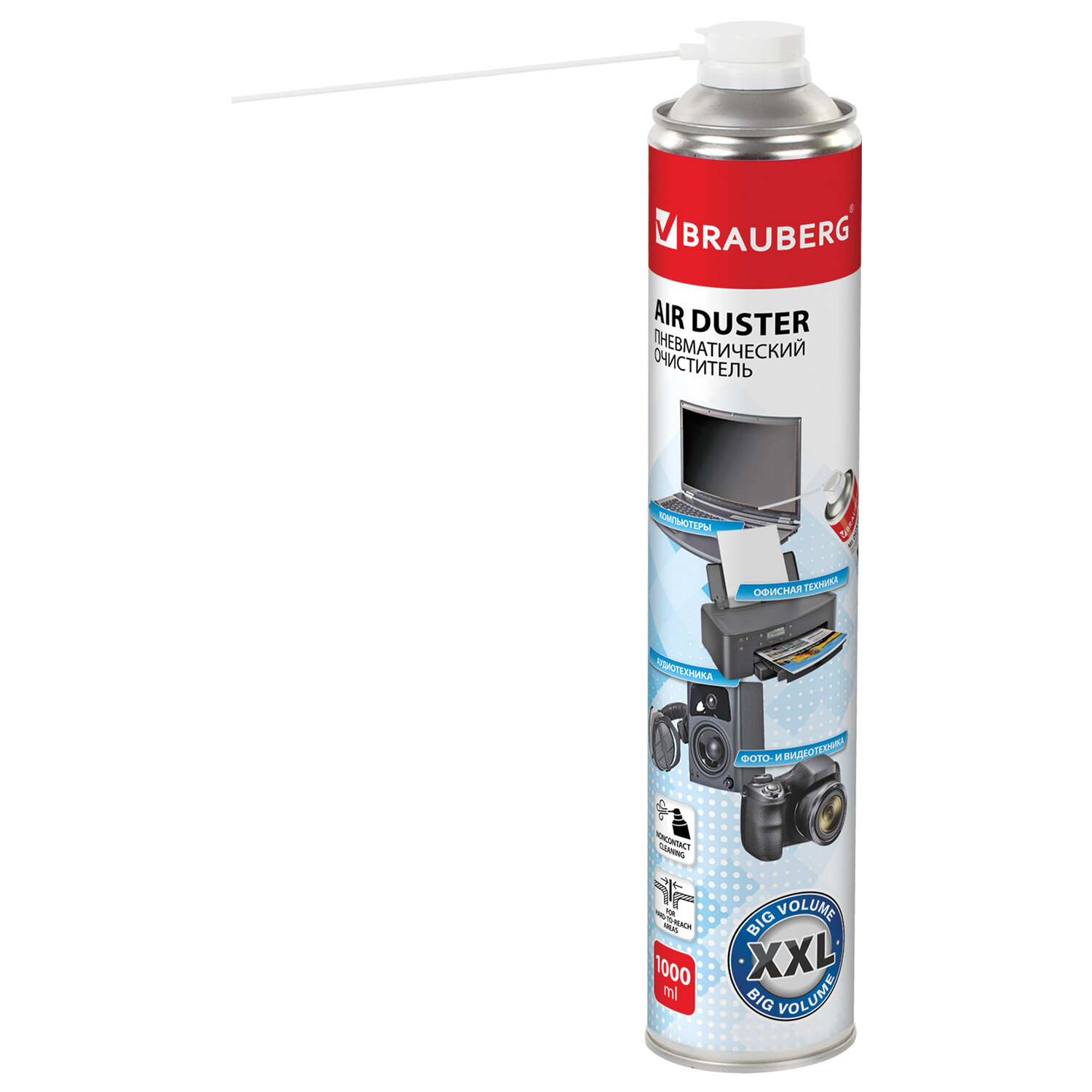 - Баллон со сжатым воздухом BRAUBERG ДЛЯ ОЧИСТКИ ТЕХНИКИ 1000 мл, 513317
