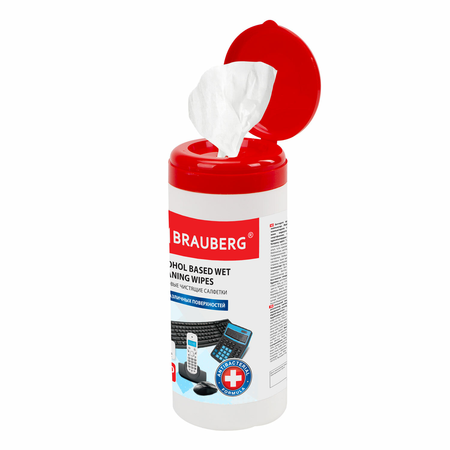 - Салфетки спиртовые универсальные АНТИБАКТЕРИАЛЬНЫЕ, BRAUBERG, 100 шт., 513536