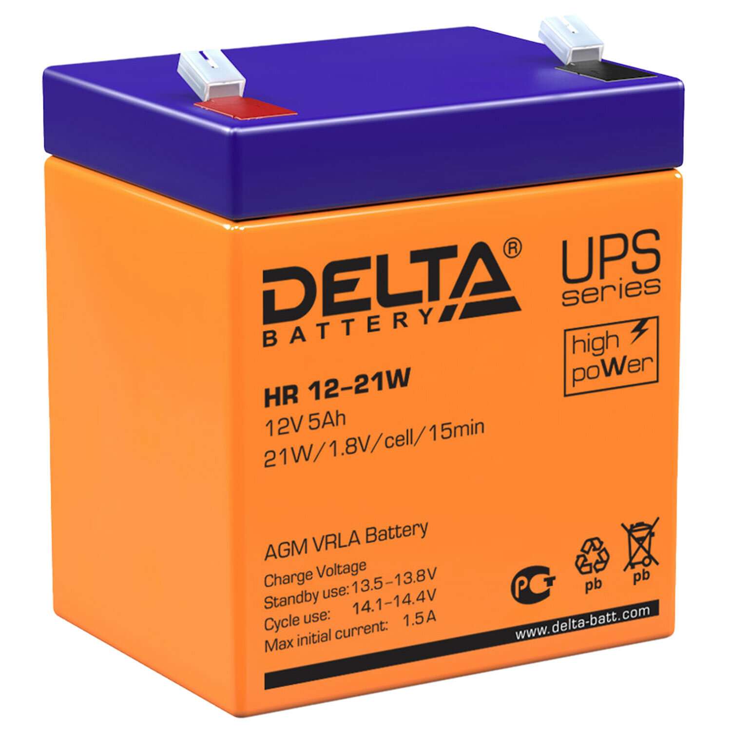 Вся информация на сайте о товарах носит справочный характер и не является публичной офертой в соответствии с пунктом 2 статьи 437 ГК РФ. Производитель оставляет за собой право изменять характеристики товара, его внешний вид и комплектность без предварительного уведомления продавца. Аккумуляторная батарея для ИБП любых торговых марок, 12 В, 5 Ач, 90х70х101 мм, DELTA, HR 12-21 W