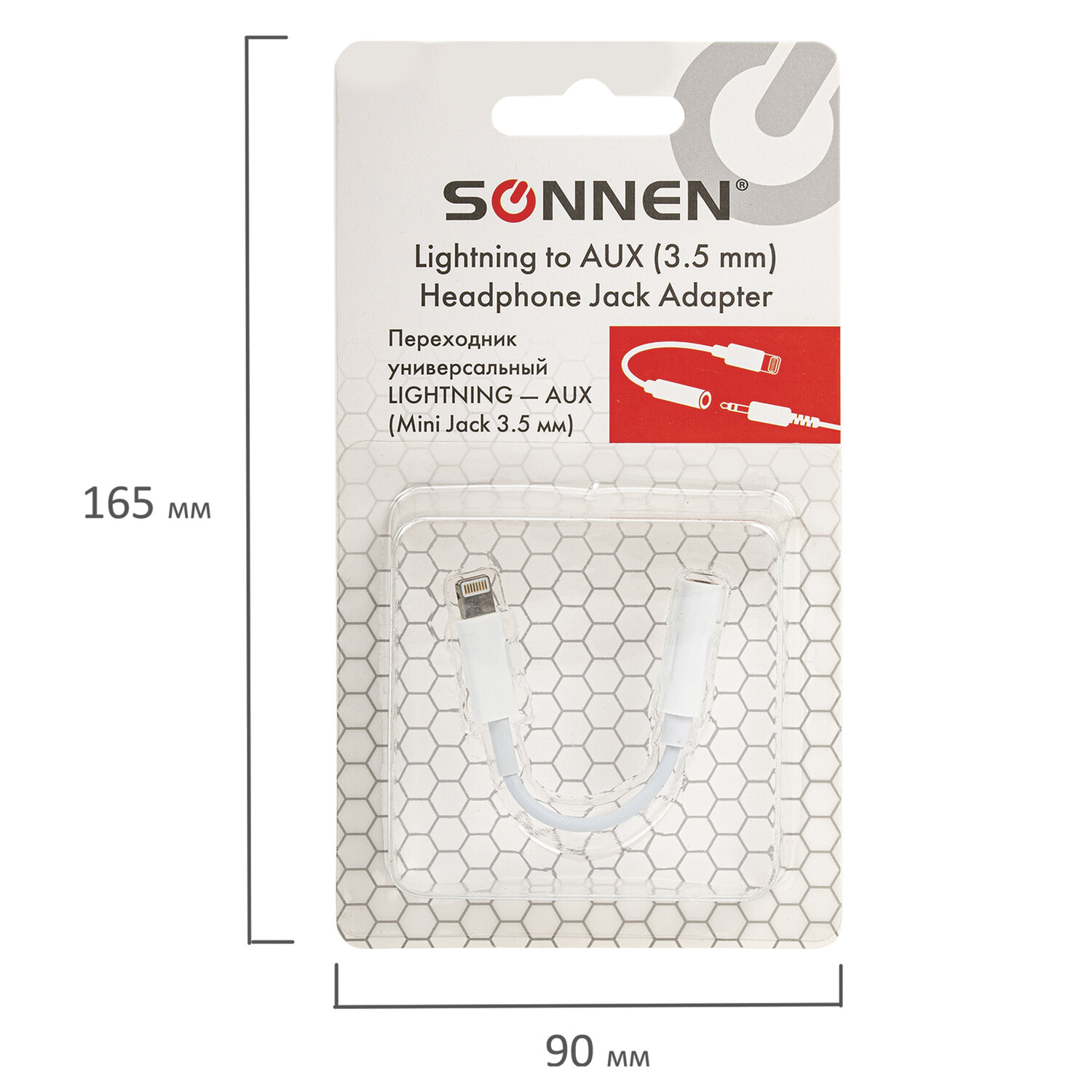 - передача аудиоинформации без потери качества. Переходник для наушников с iPhone LIGHTNING на AUX (MINI JACK 3.5 мм), SONNEN, 0,1 м, белый, 513565
