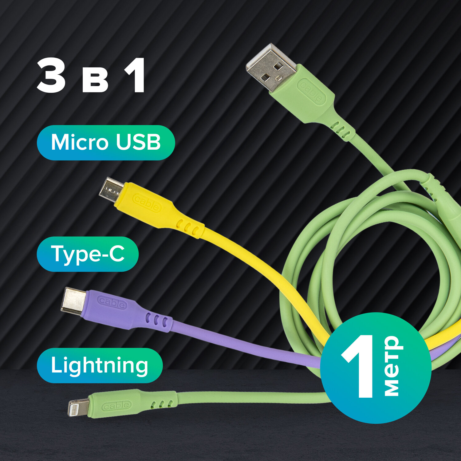 Кабель для зарядки 3 в 1 USB 2.0-Micro USB/Type-C/Lightning, 1 м, SONNEN, медь, 513562