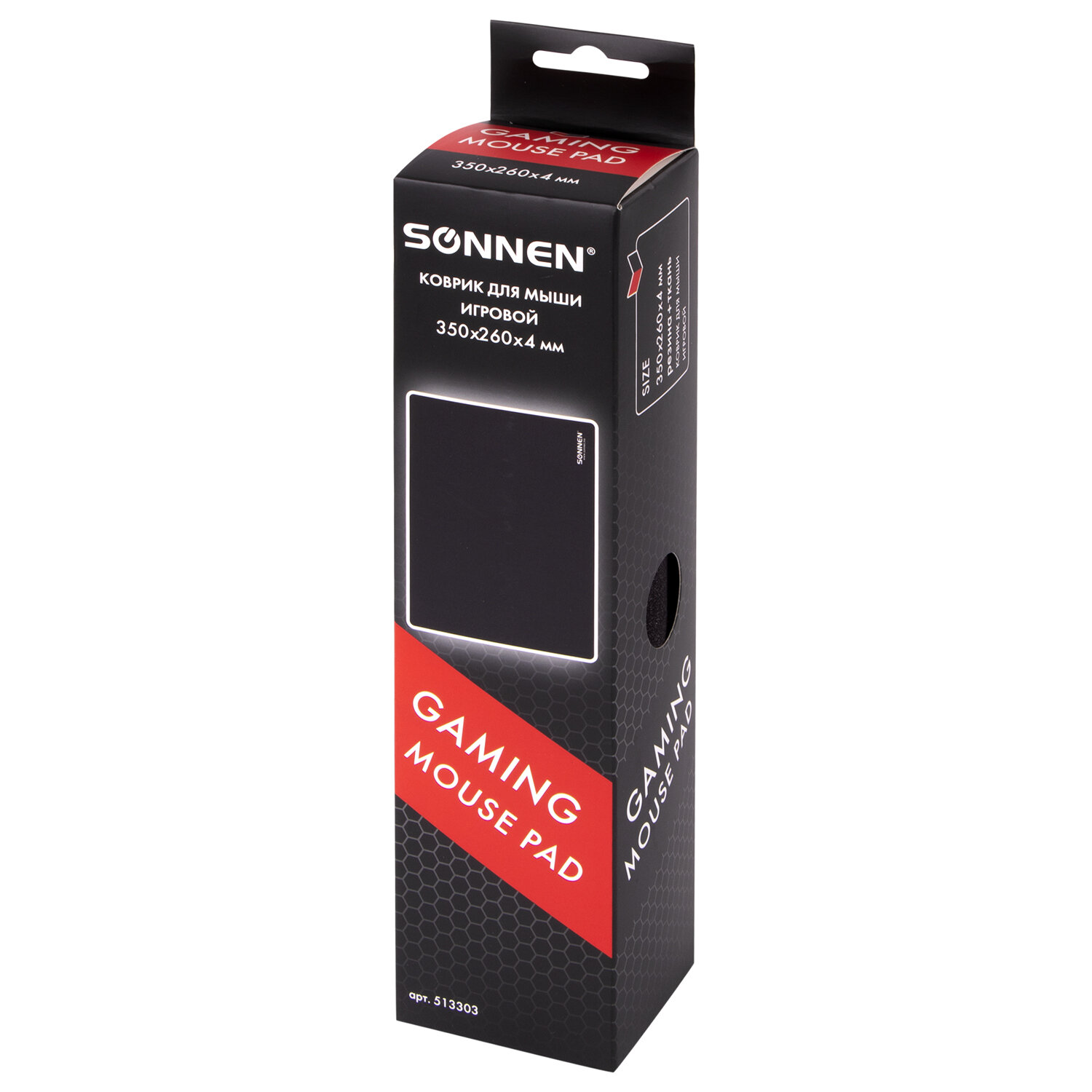 - Коврик для мыши игровой SONNEN "ASSAULT", резина + ткань, 350х260х4 мм, 513303