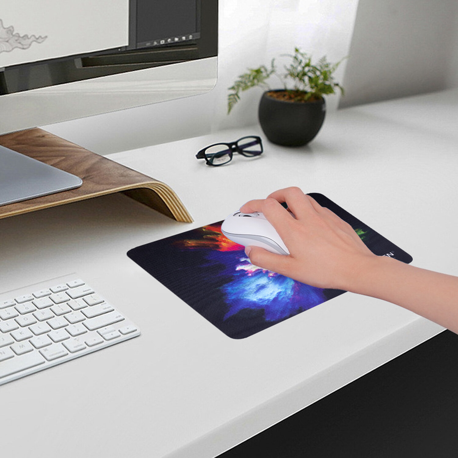 Прорезиненное основание надежно фиксирует аксессуар на столе. Благодаря компактным размерам этот привлекательный в плане дизайна коврик для мыши удобно переносить в компьютерной сумке. Коврик для мыши SONNEN "EXPLOSIVE", резина + ткань, 220х180х3 мм, 513291