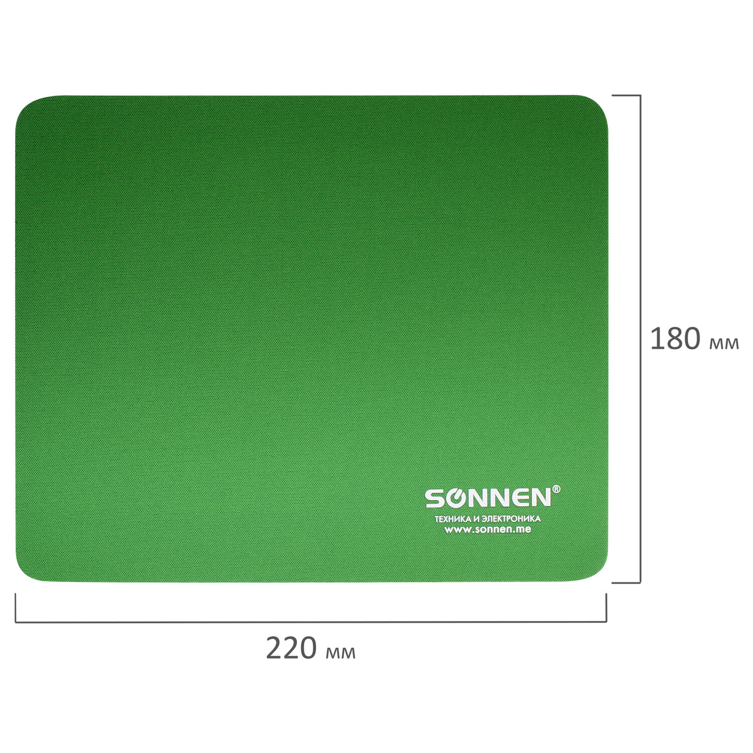 - Коврик для мыши SONNEN "GREEN", резина + ткань, 220х180х3 мм, 513305
