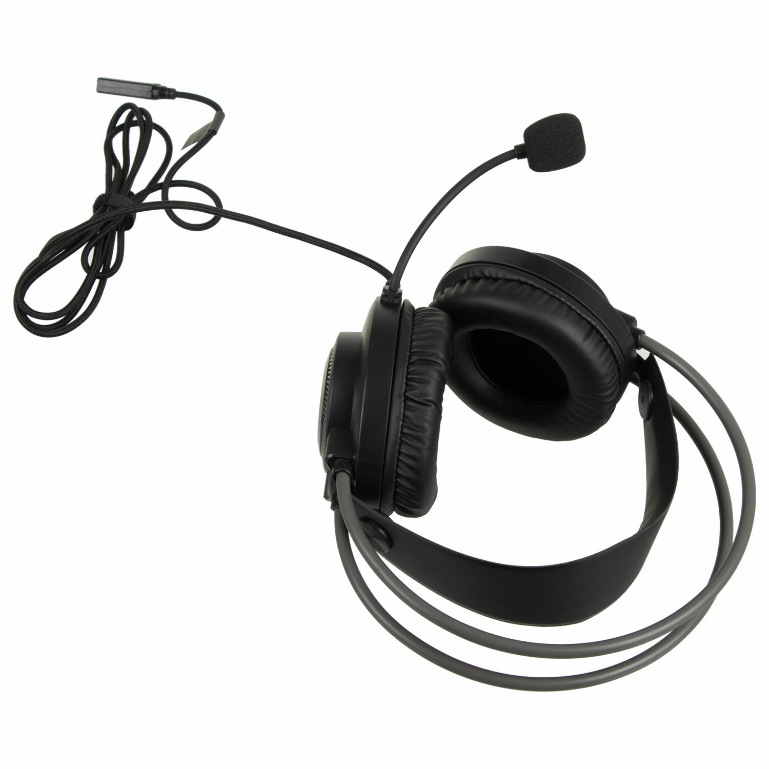 Проводная гарнитура совместима с самыми разными устройствами и подключается к ним при помощи классического USB-кабеля, оснащенного регулятором громкости и кнопками управления микрофоном. Длина провода составляет 2 м.