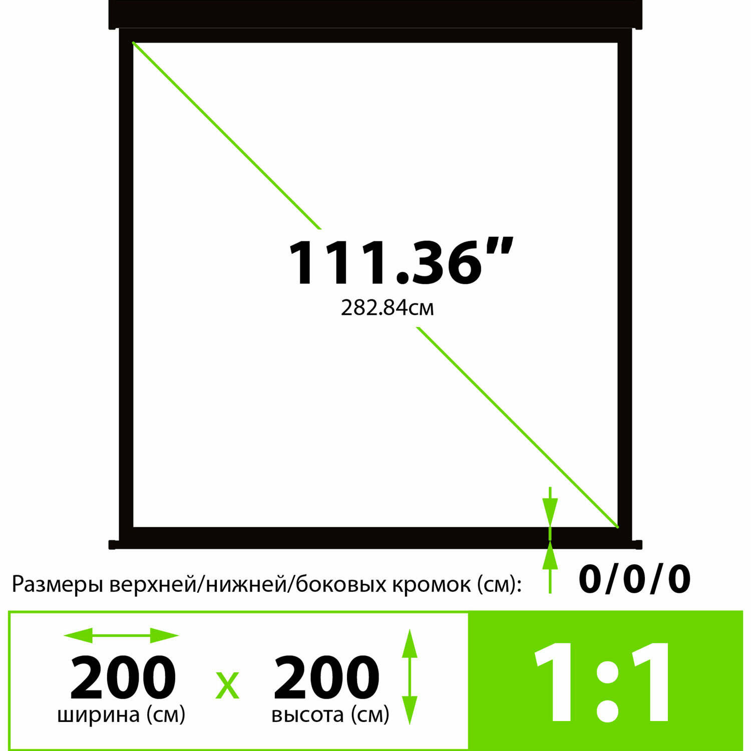Проекционный экран с диагональю 111,36 дюйма и размерами 200х200 см.