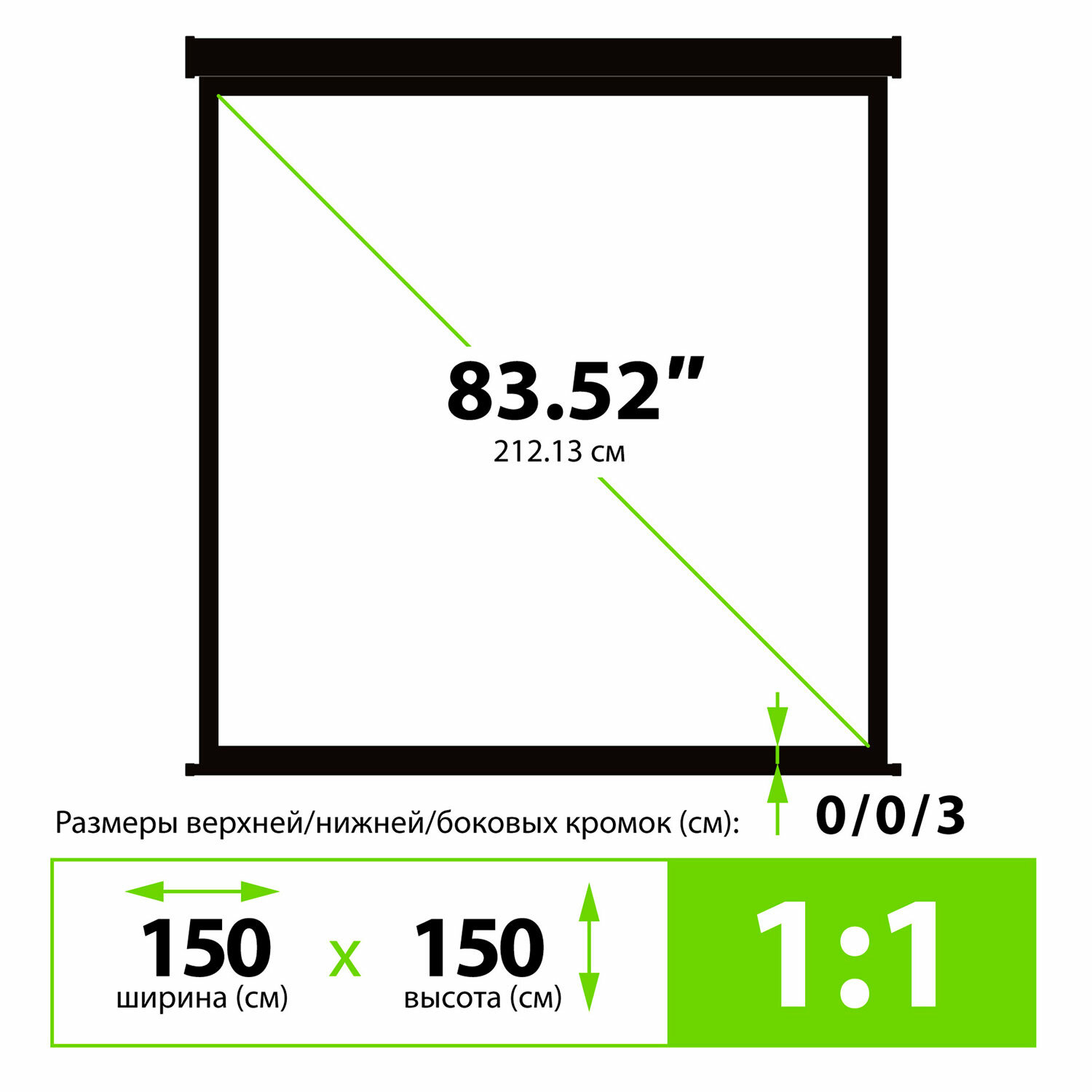 - Экран Cactus Wallscreen CS-PSW-150X150-BK, 150x150 см, 1:1, настенно-потолочный, черный, PSW-150x150-BK