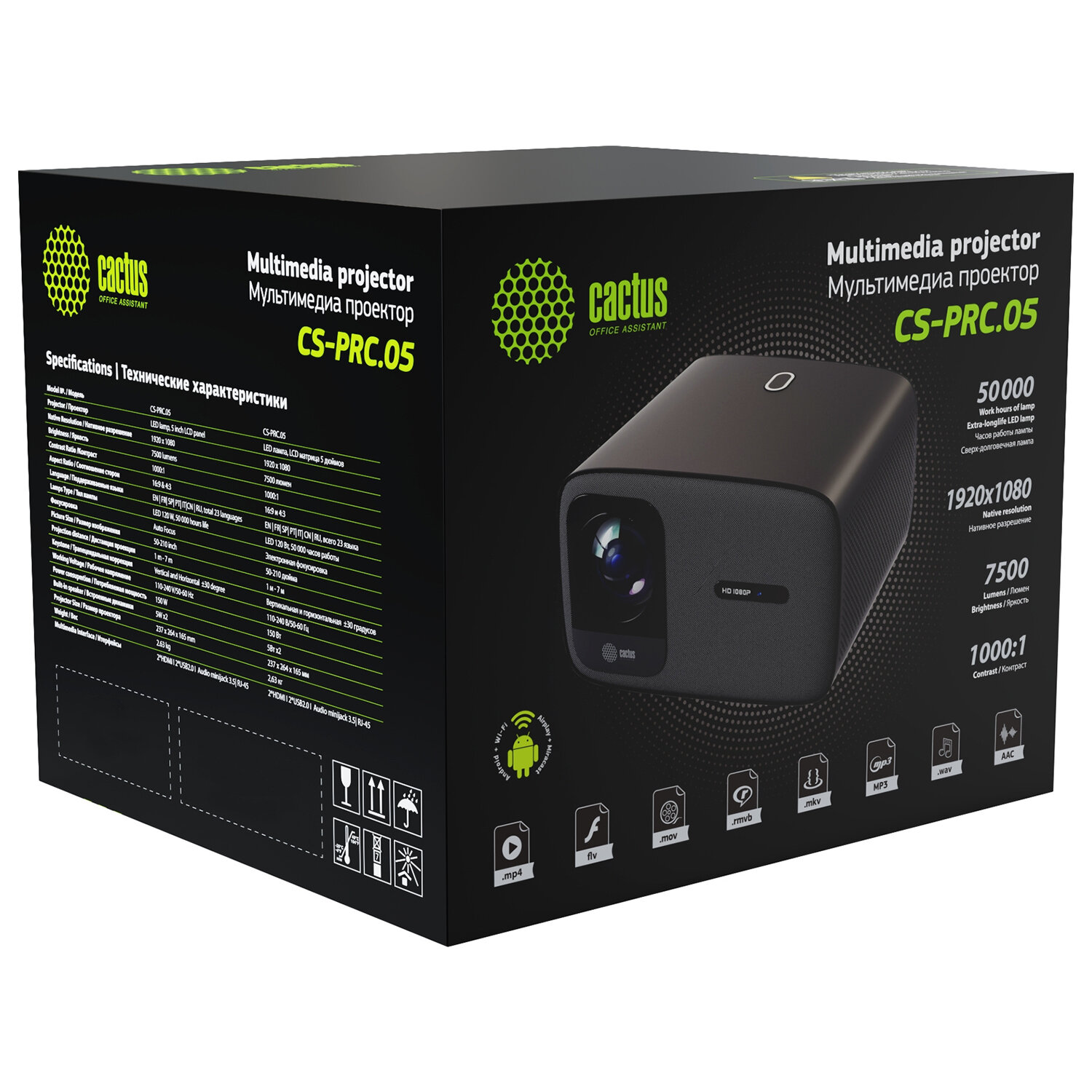 - Проектор CACTUS CS-PRC.05B.WUXGA-A, LCD, 1920x1080, 16:9, 4:3, 7500 лм, 1000:1, 1,78 кг