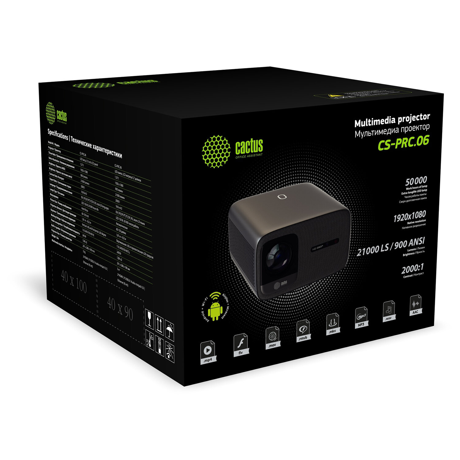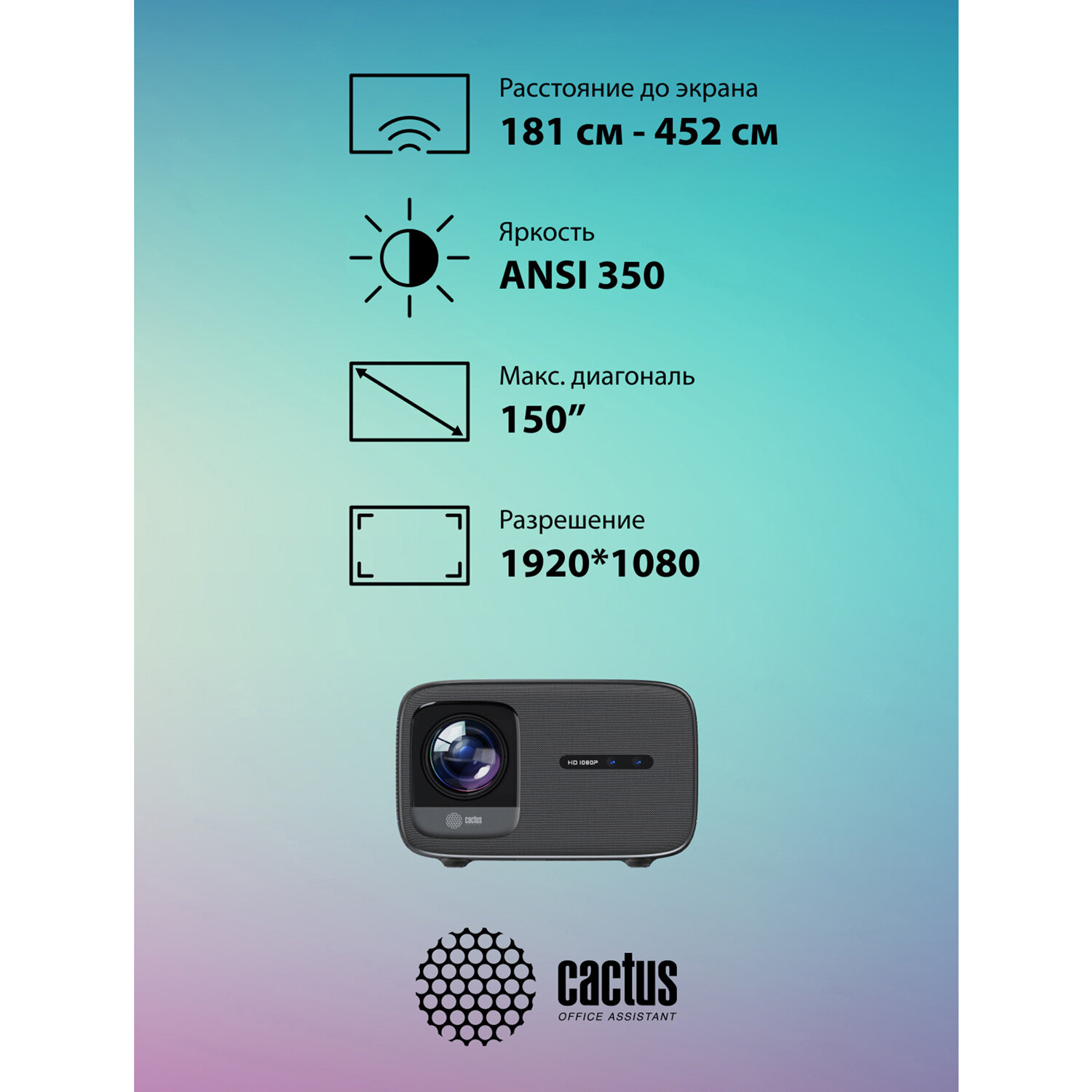 - Проектор CACTUS CS-PRC.06B.WUXGA-A, LCD, 1920x1080, 16:9, 4:3, 900 лм, 2000:1, 3 кг