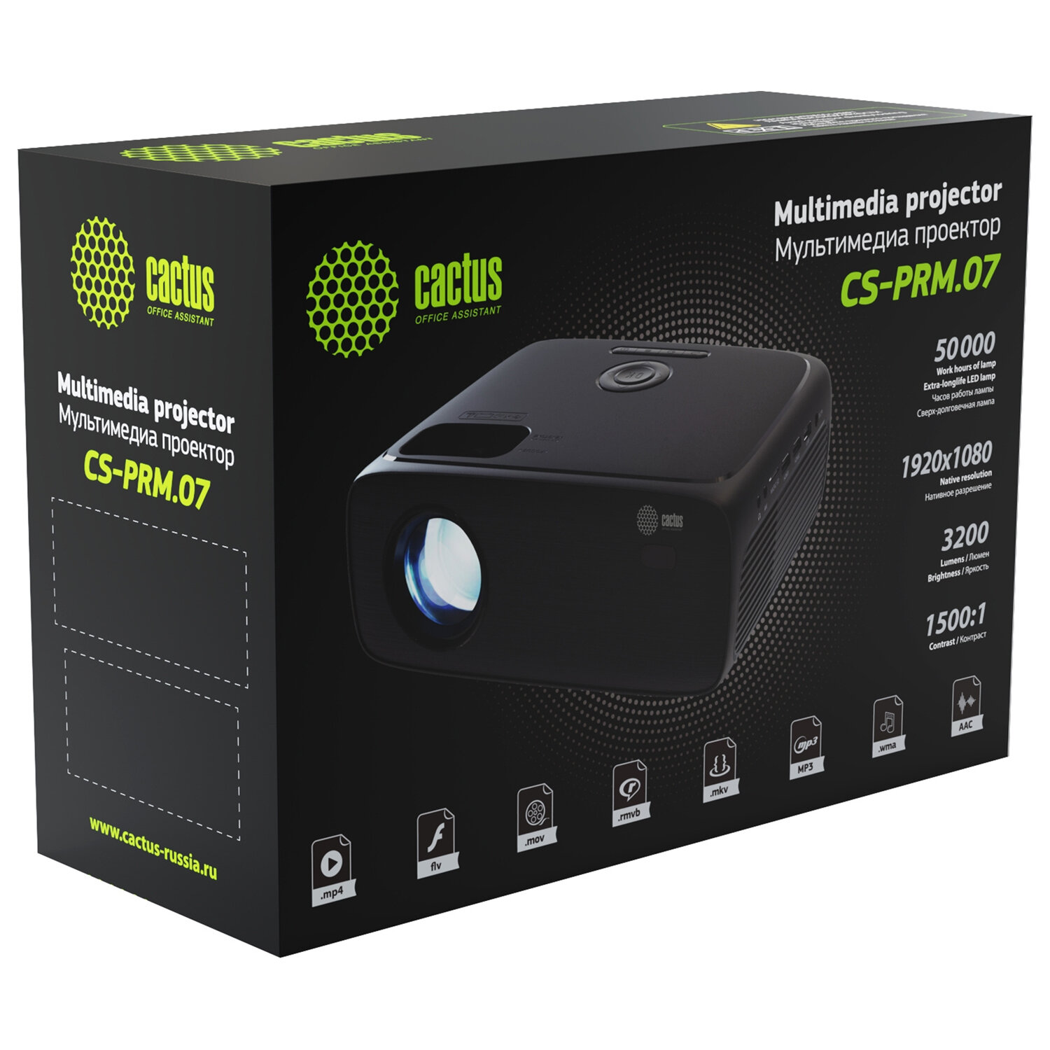 Проектор CACTUS CS-PRM.07B.WUXGA, LCD, 1920x1080, 16:9, 3200 лм, 1500:1, 1,16 кг, черный