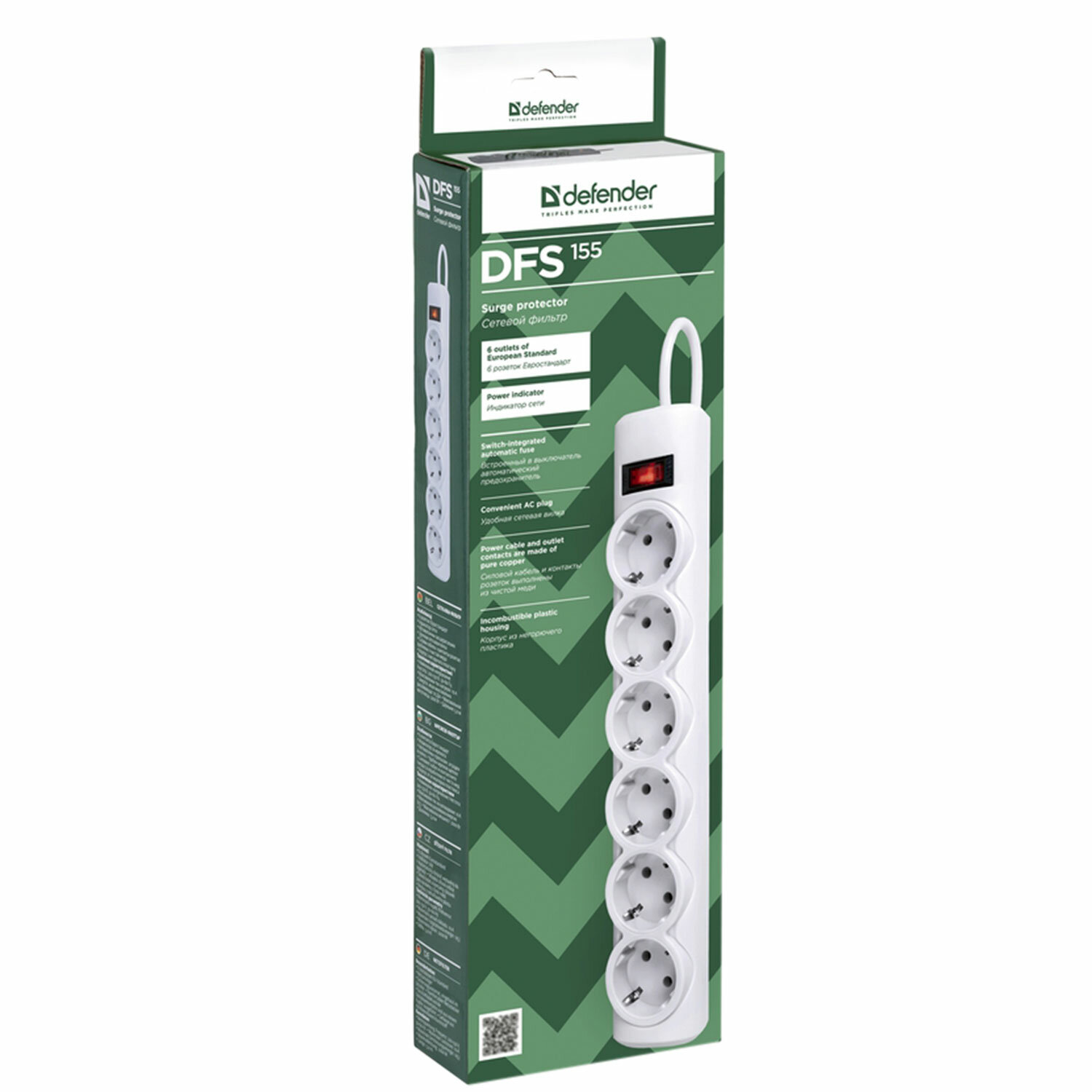- Сетевой фильтр DEFENDER DFS 155, 6 розеток, 5 м, белый, 99493