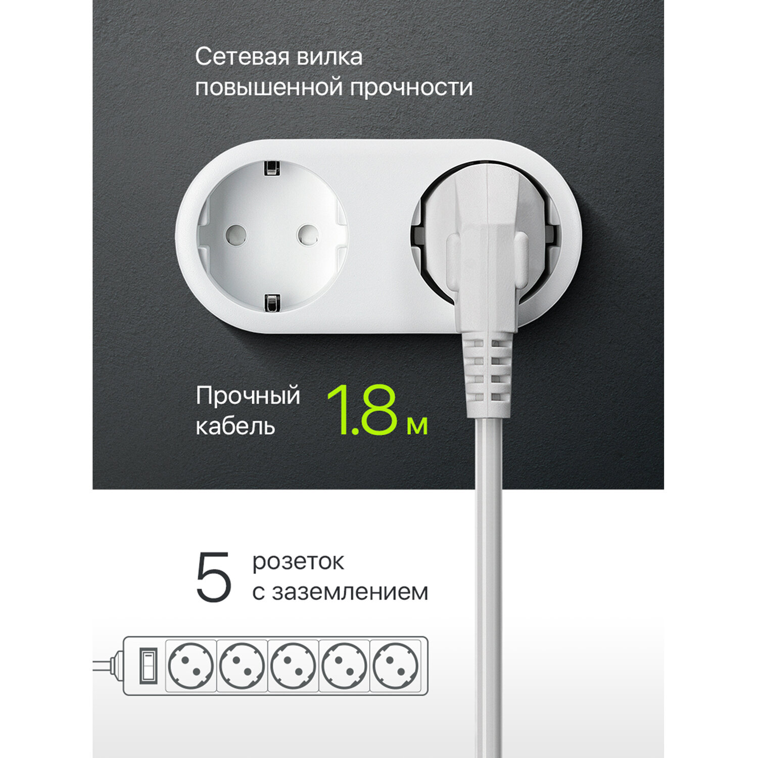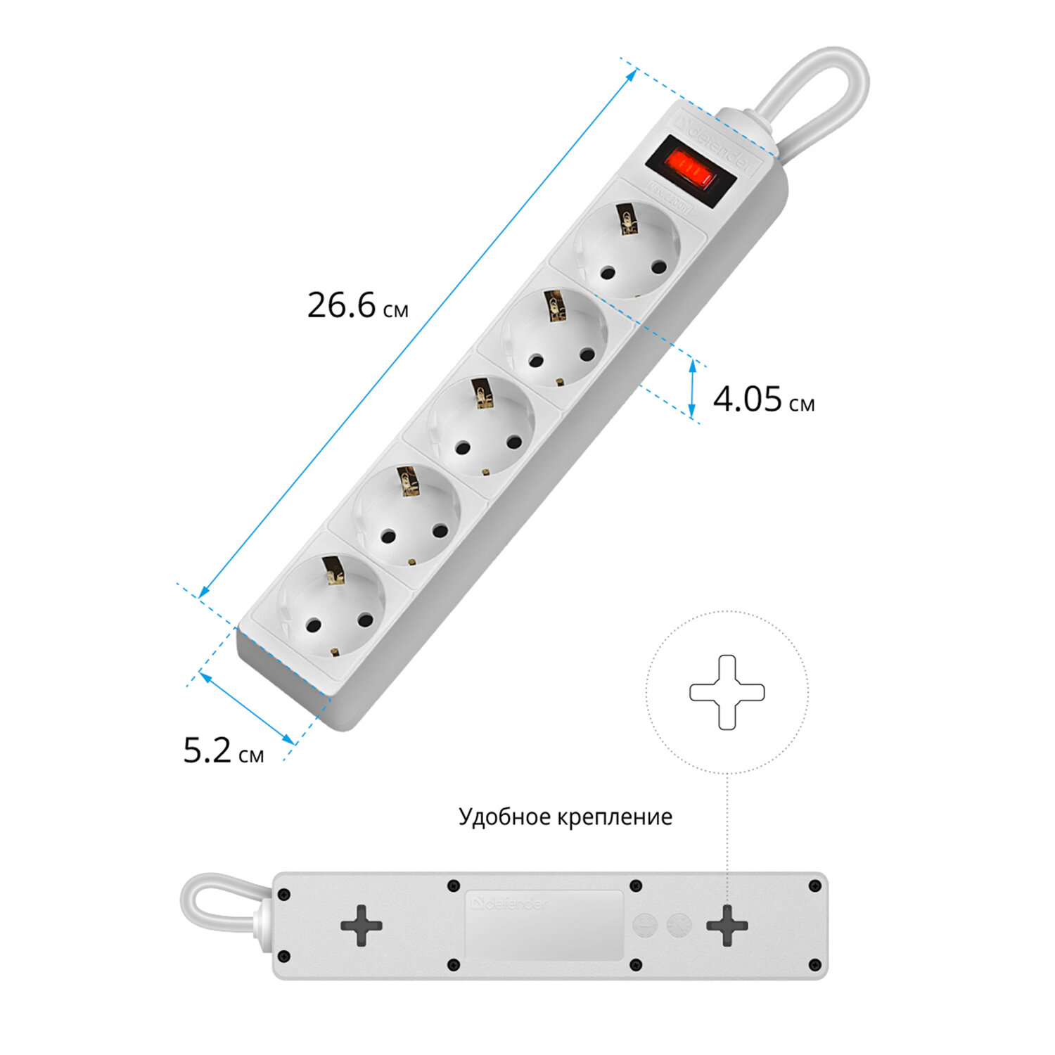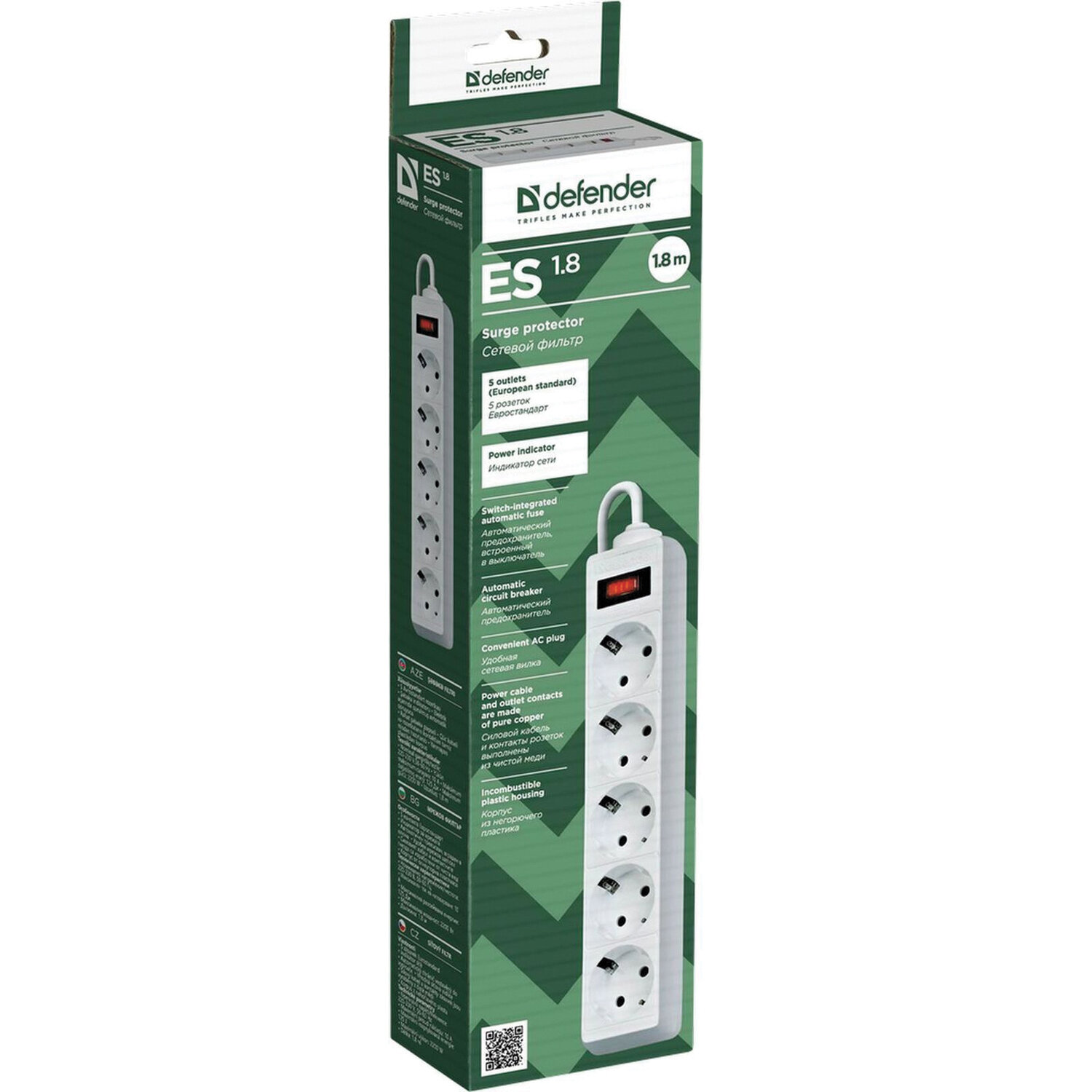 - Сетевой фильтр DEFENDER ES, 5 розеток, 1,8 м, белый, 99481