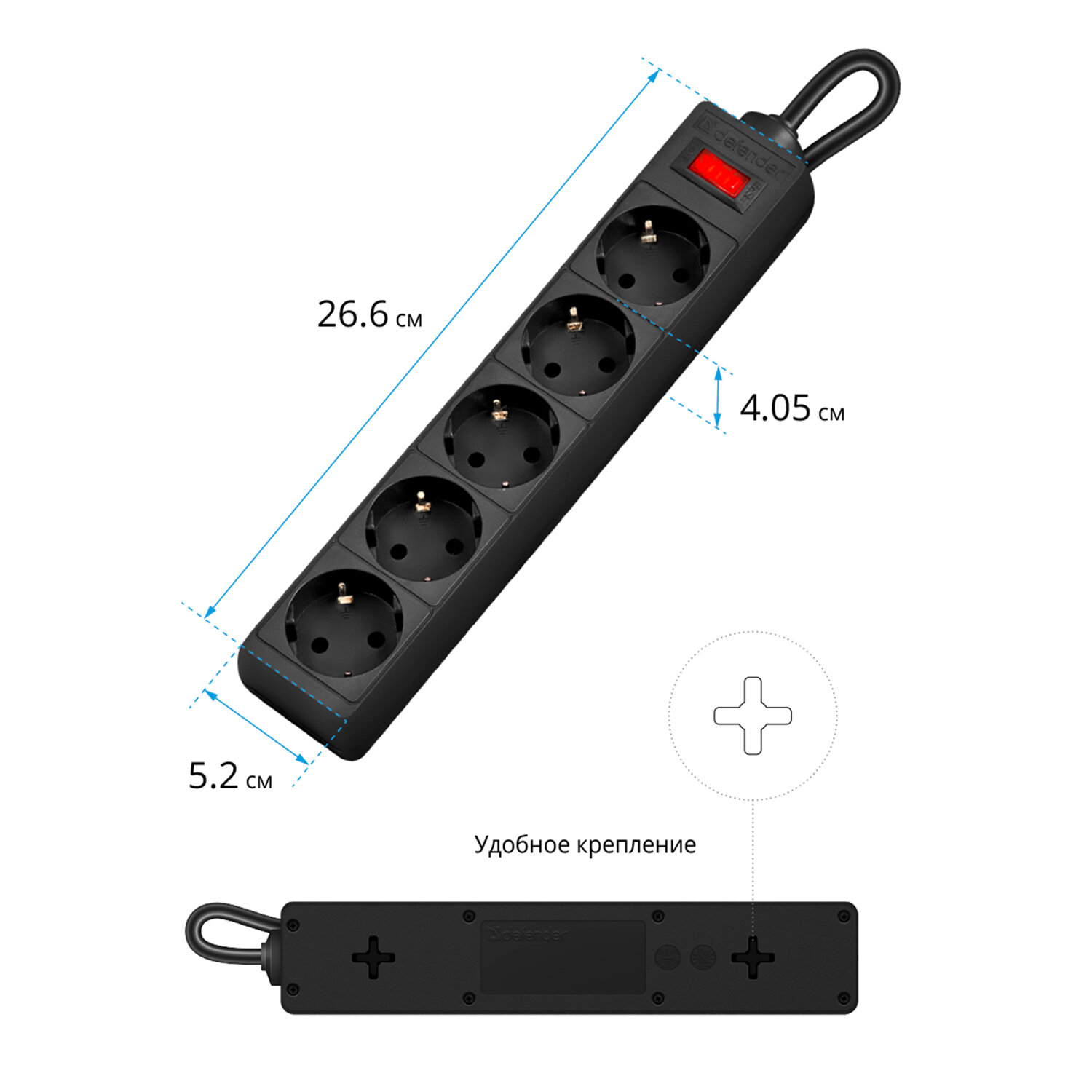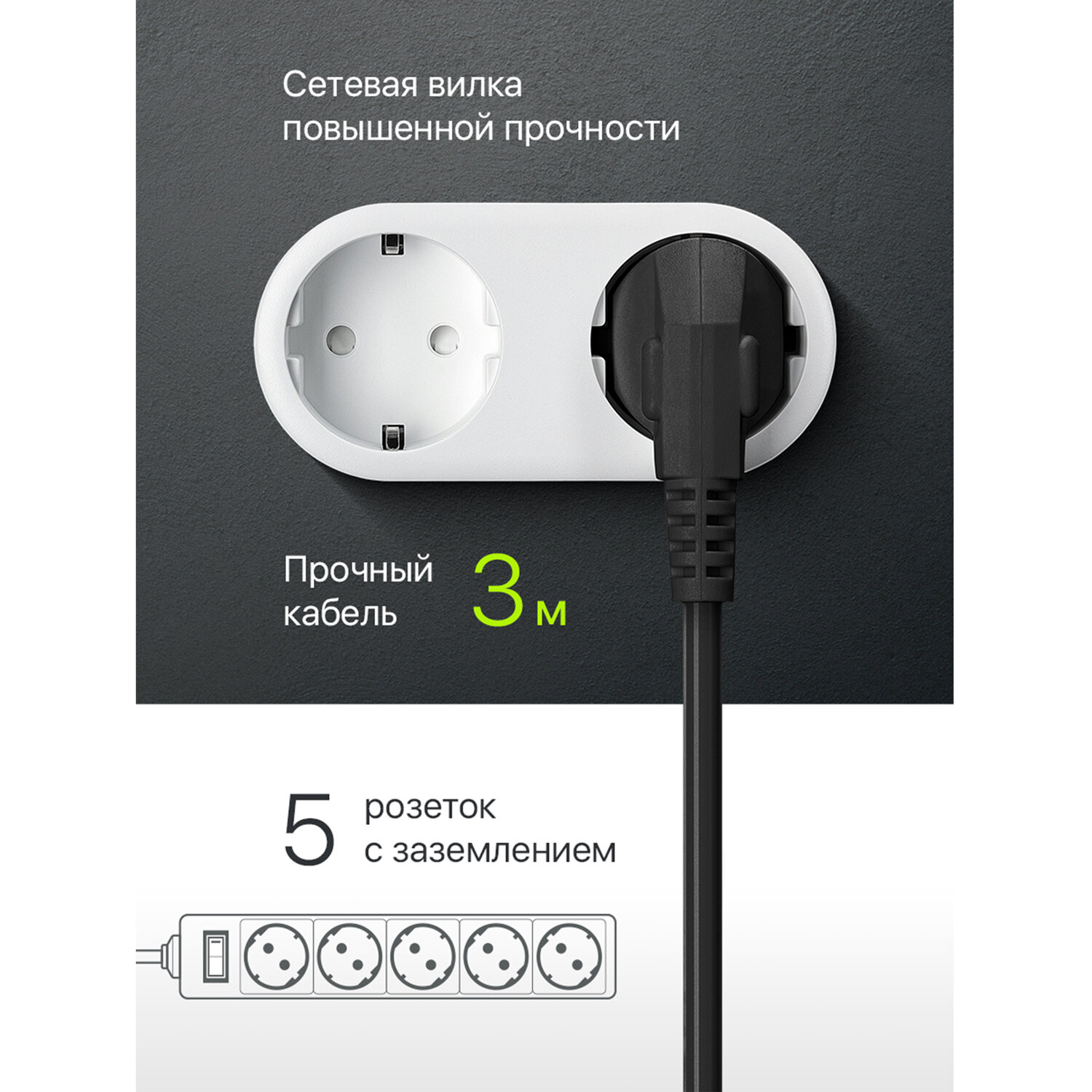 - Сетевой фильтр DEFENDER ES, 5 розеток, 3 м, черный, 99485