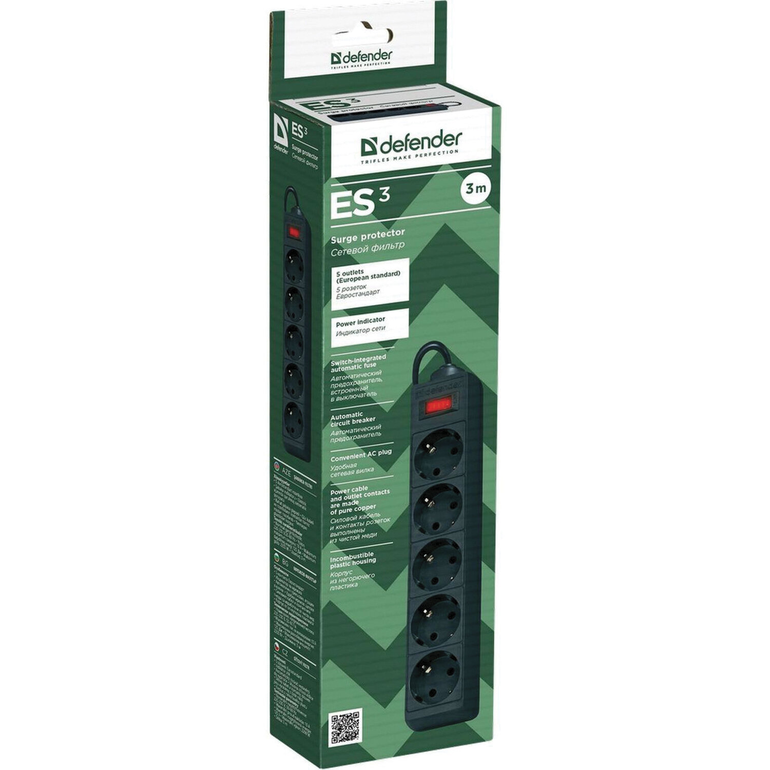 Сетевой фильтр DEFENDER ES, 5 розеток, 3 м, черный, 99485