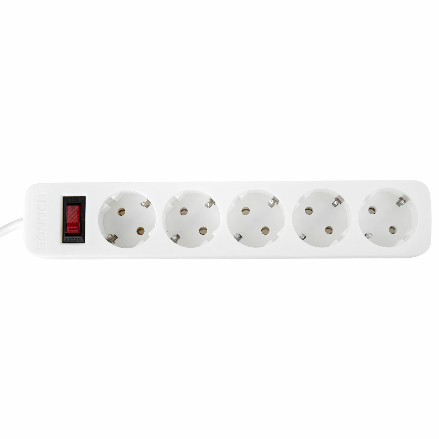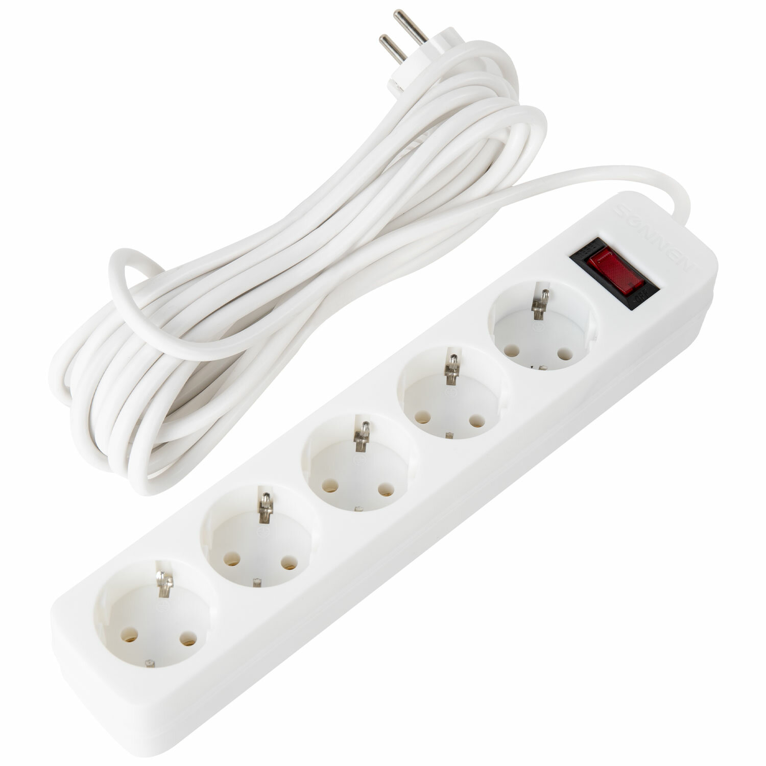 Сетевой фильтр SONNEN SPW-505, 5 розеток с заземлением, выключатель, 10 А, 5 м, белый, 513655