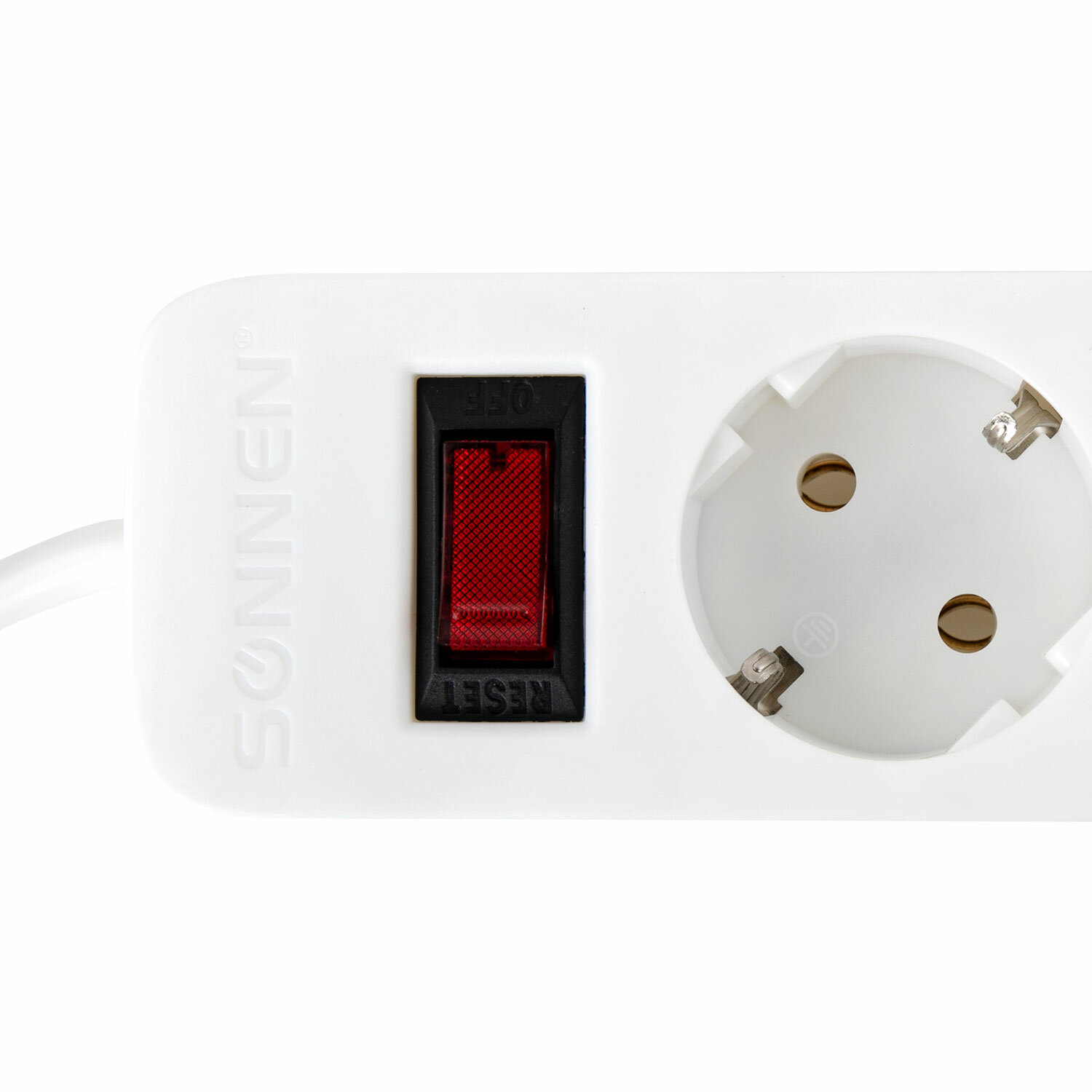- Сетевой фильтр SONNEN SPW-505, 5 розеток с заземлением, выключатель, 10 А, 5 м, белый, 513655