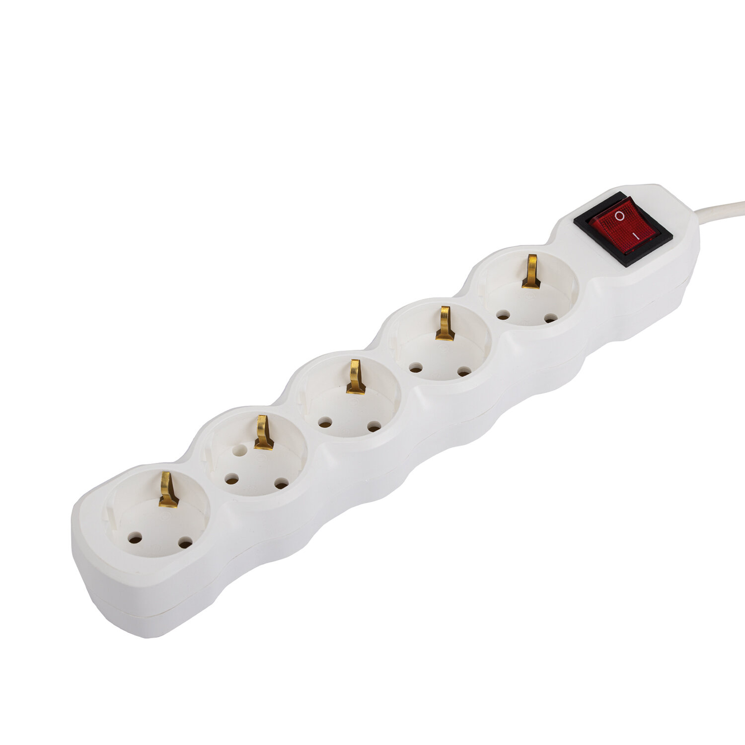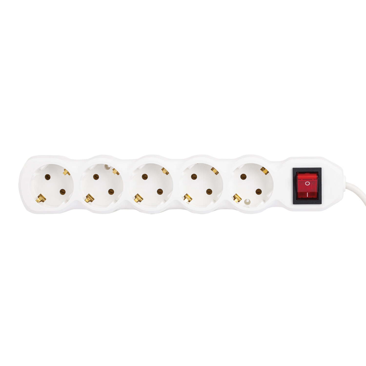 - Сетевой фильтр СУ10-005 5 розеток, с заземлением, выключатель, 10 А, 5 м, белый, 7040