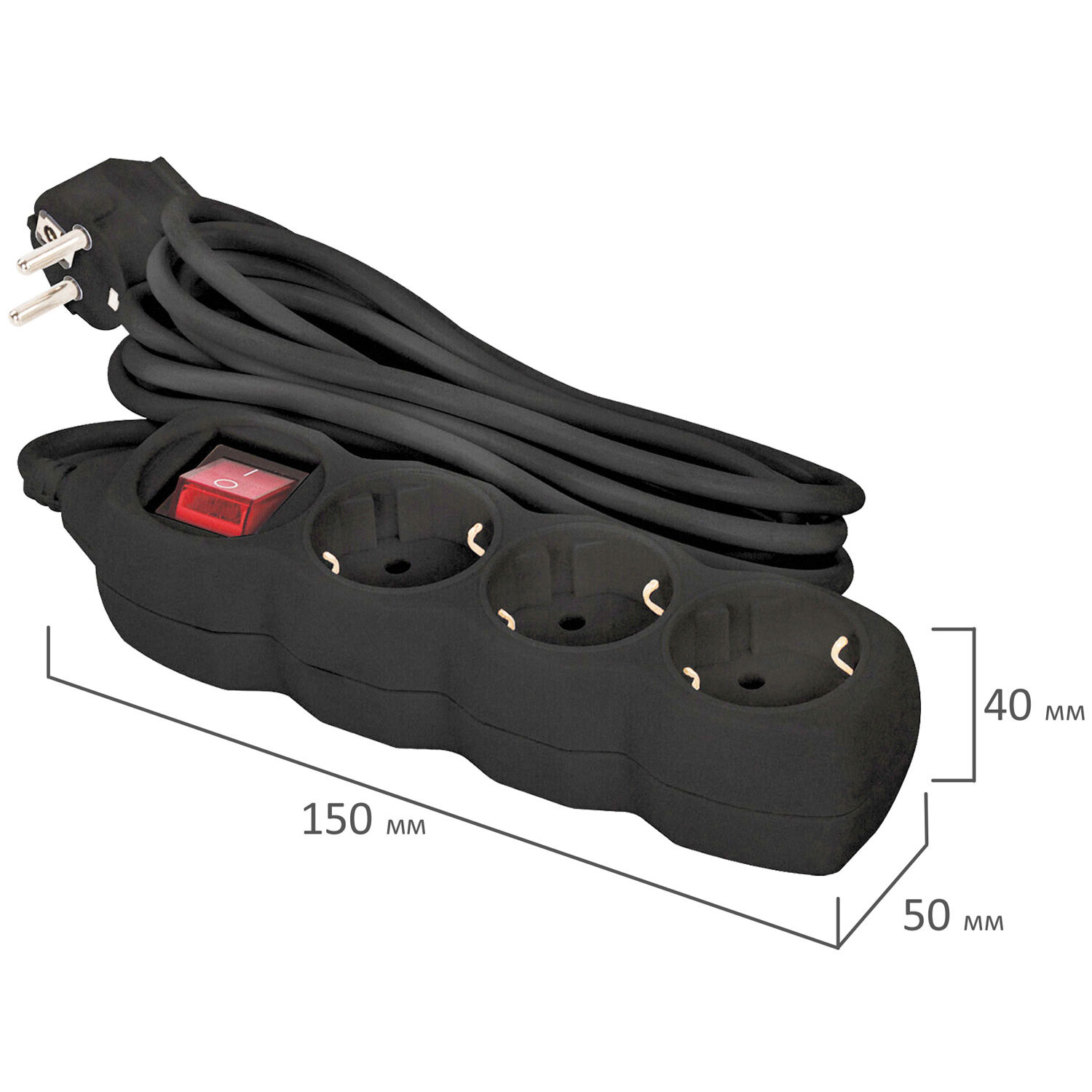 - Удлинитель сетевой SONNEN U-133GS, 3 розетки, c заземлением, выключатель, 10 А, 5 м, черный, 513267