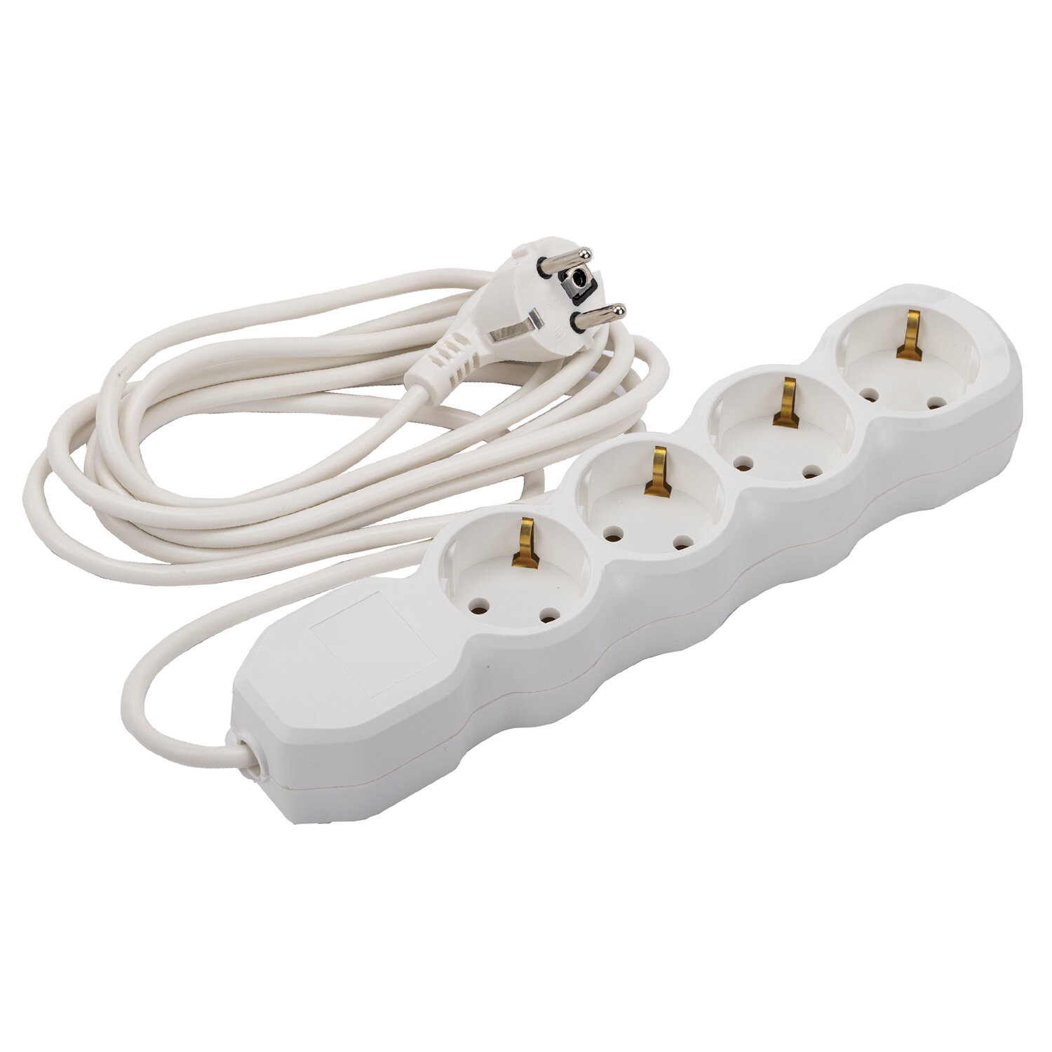 - Удлинитель У10-004 4 розетки, с заземлением, 10 А, 3 м, белый, 6872