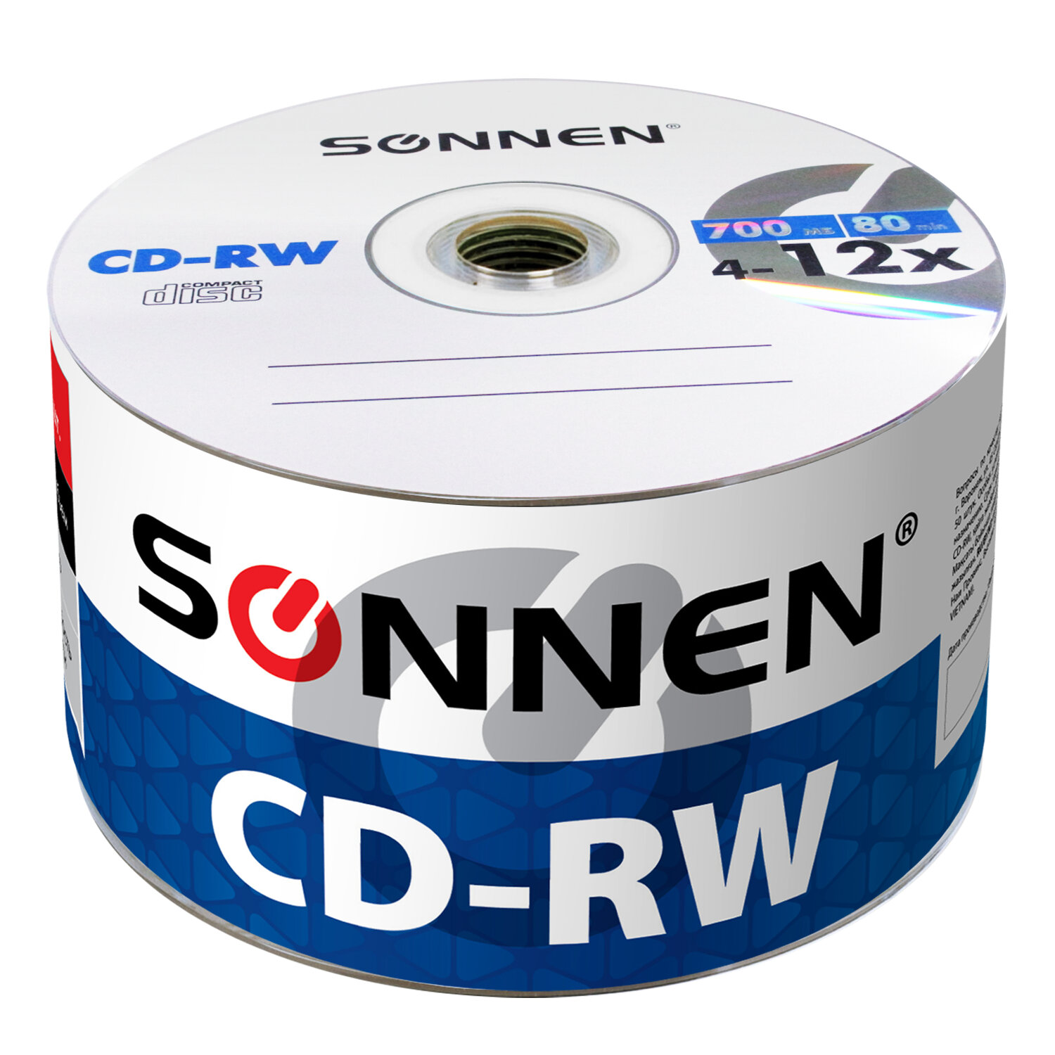 - Диски CD-RW SONNEN 700 Mb 4-12x Bulk (термоусадка без шпиля), КОМПЛЕКТ 50 шт., 512578