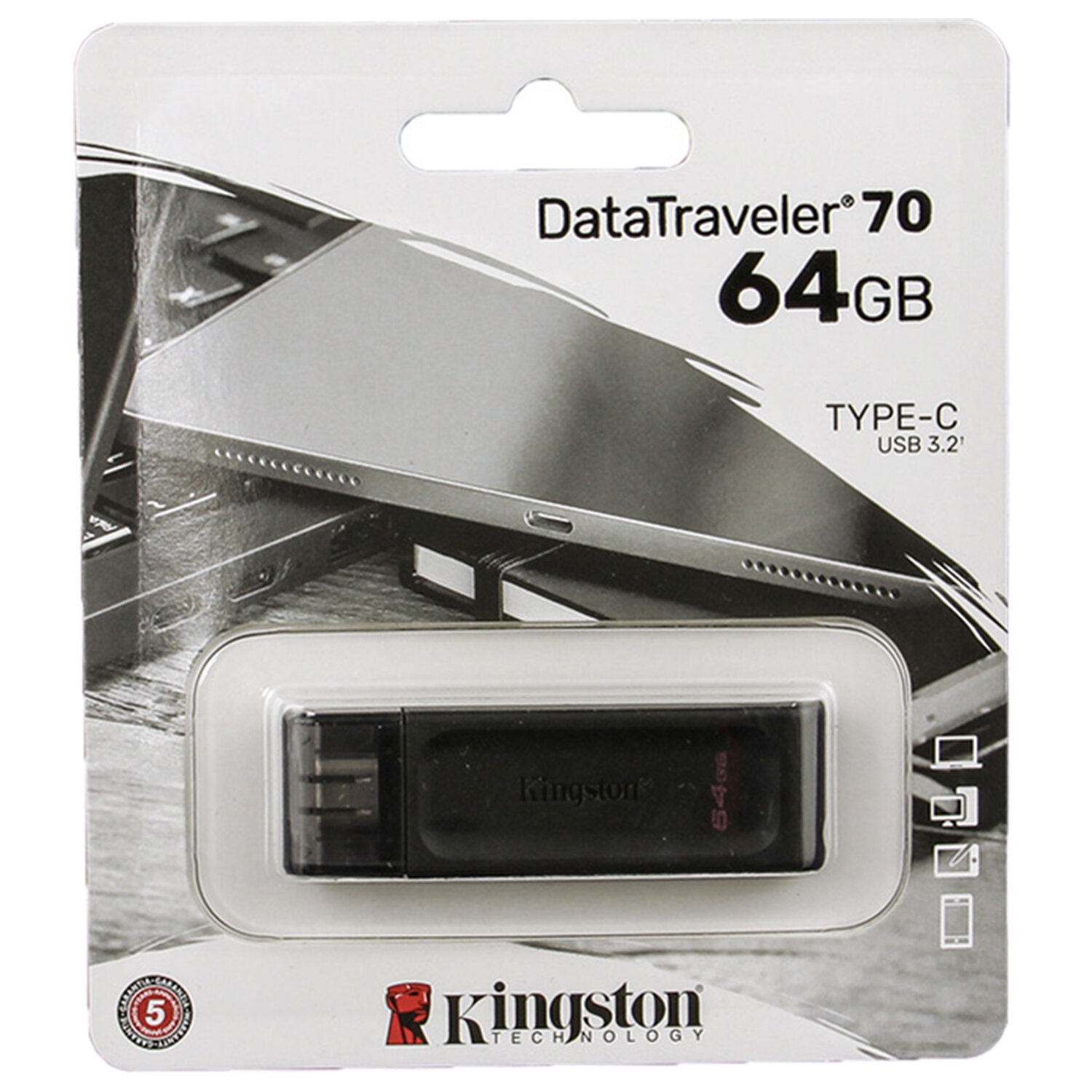 - Флеш-диск 64 GB KINGSTON DataTraveler 70, разъем Type-C 3.2, черный, DT70/64GB